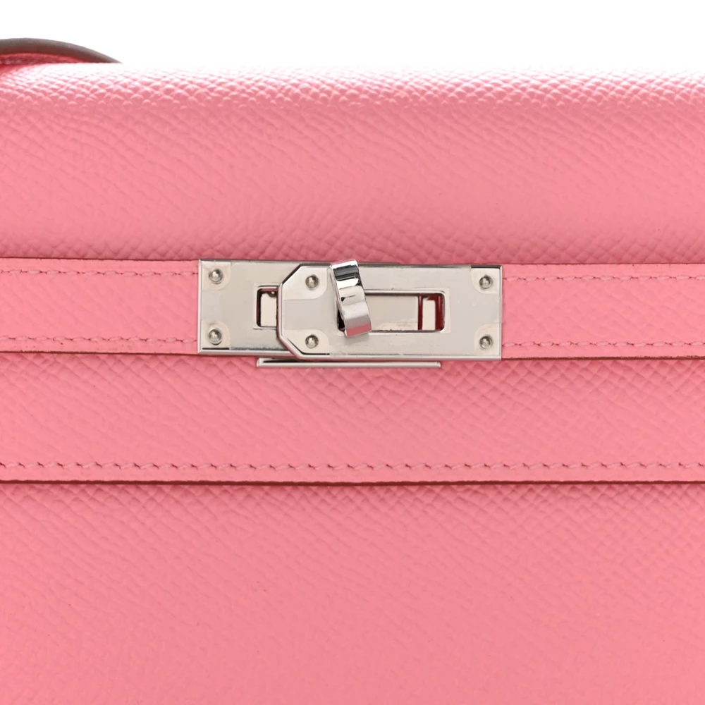 This Hermès Epsom Kelly Wallet To Go Rose Confetti is a playful and stylish wallet in a delicate pink shade. The Epsom leather provides a structured and polished look while ensuring durability. The compact design allows for easy wear as a crossbody or clutch. Palladium hardware adds a sleek touch, complementing the soft pastel hue. This wallet is a charming and practical choice for those who love feminine elegance.