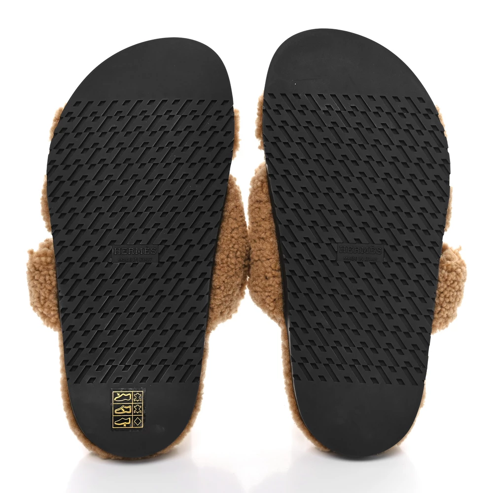 This Hermès Chypre sandal in Beige Argile woolskin is a neutral and cozy option for effortless styling. The soft woolskin in a muted beige tone offers a luxurious feel, while the contoured sole ensures comfort. The adjustable strap provides a secure fit, making this sandal perfect for everyday wear with a chic twist.