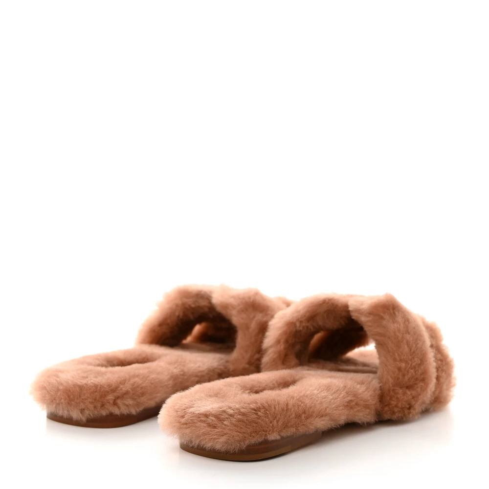 This Hermès Oran sandal in Naturel woolskin is a refined and textural take on the signature design. The plush wool material enhances its cozy appeal, while the neutral tone ensures effortless versatility. Designed for relaxed elegance, it blends warmth with timeless style. Whether worn with casual loungewear or chic ensembles, this sandal offers an elevated yet cozy aesthetic.