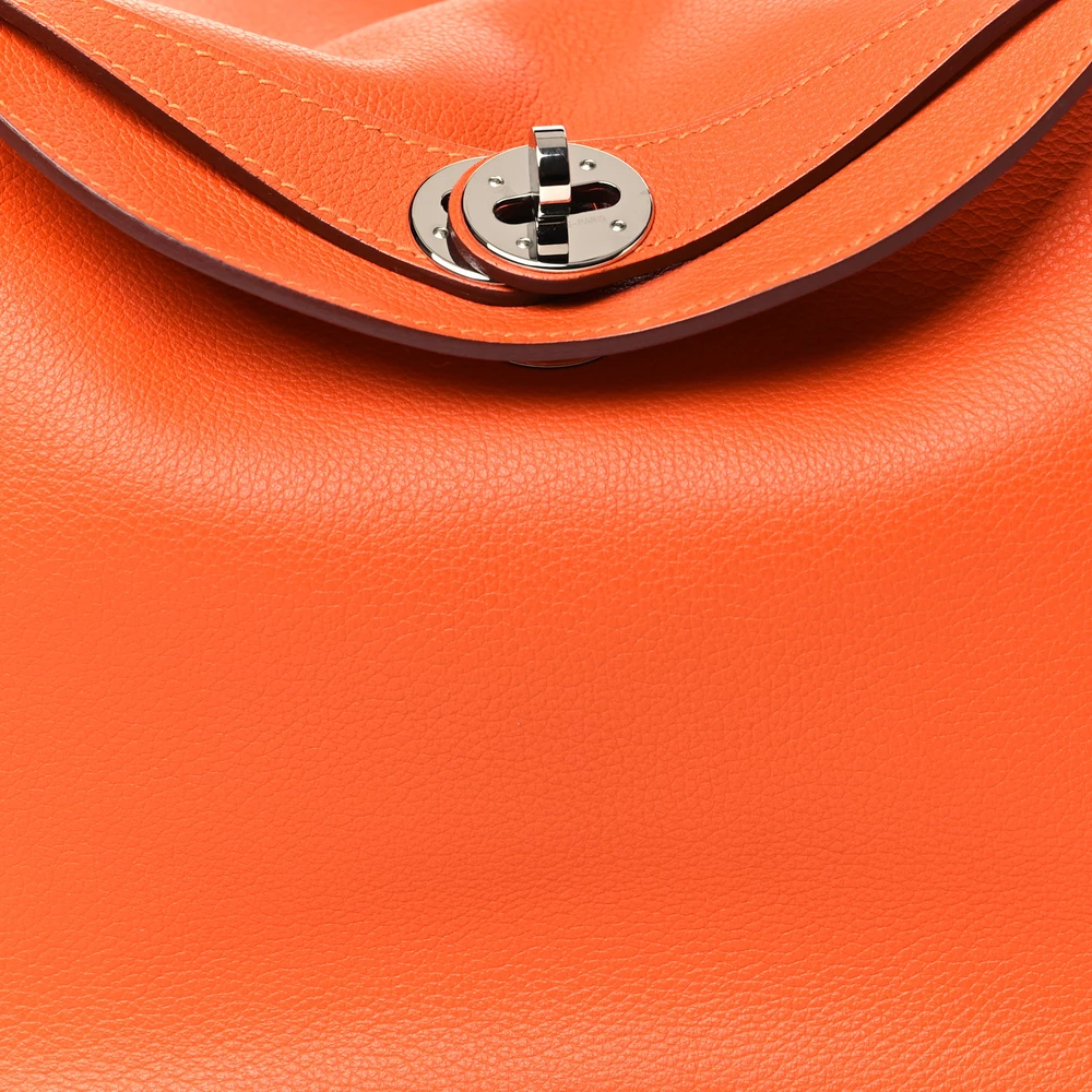 This Hermès Evercolor Lindy 26 in Feu is a bold and vibrant handbag in a fiery orange shade. The Evercolor leather provides a smooth and structured finish, making it a refined yet eye-catching choice. Palladium hardware adds a sleek touch, enhancing its modern appeal. Spacious and stylish, it’s a confident statement piece for any wardrobe.