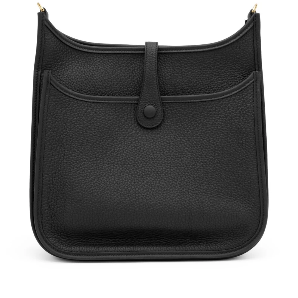 This Hermès Black Clémence Evelyne III 29 with Gold Hardware is a sophisticated and functional handbag in timeless black. The grained Clémence leather is soft and durable, while the gold hardware adds a touch of warmth and luxury. The perforated “H” logo and crossbody design make it perfect for effortless style. This Evelyne is an elegant and practical choice for daily wear.