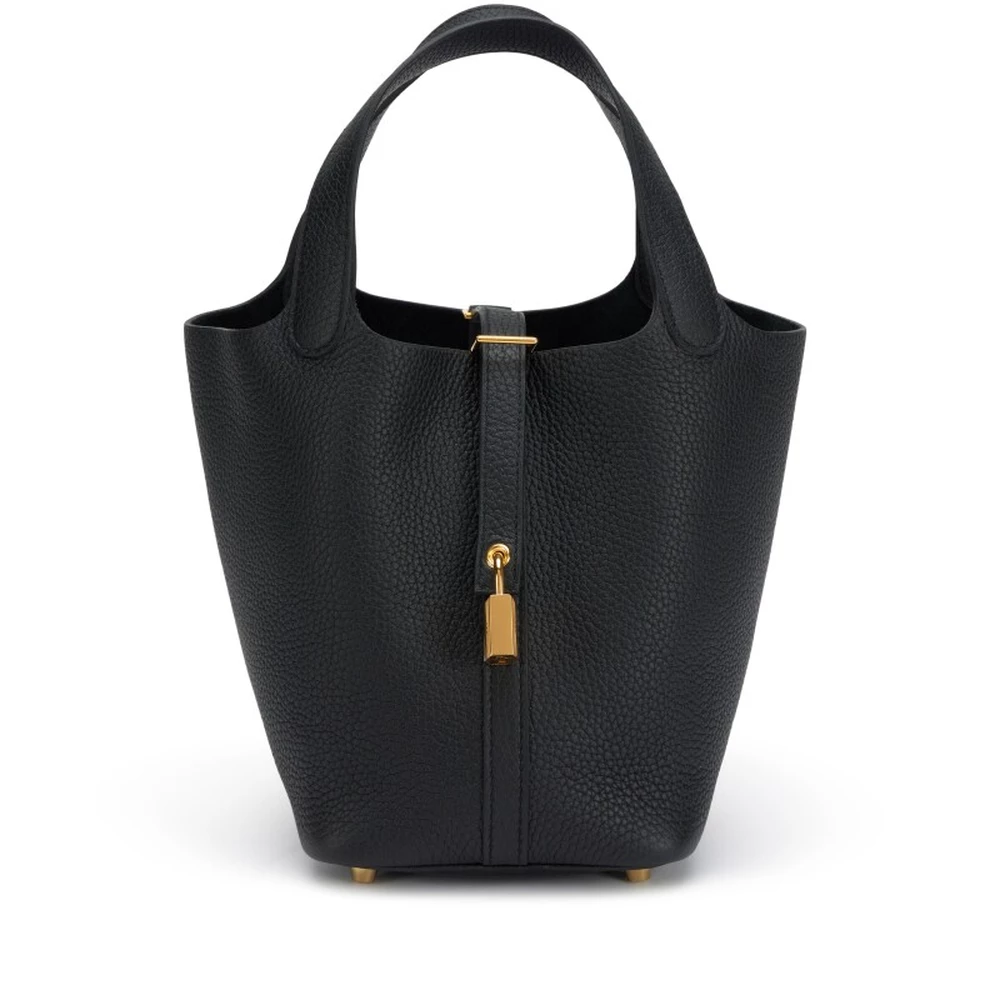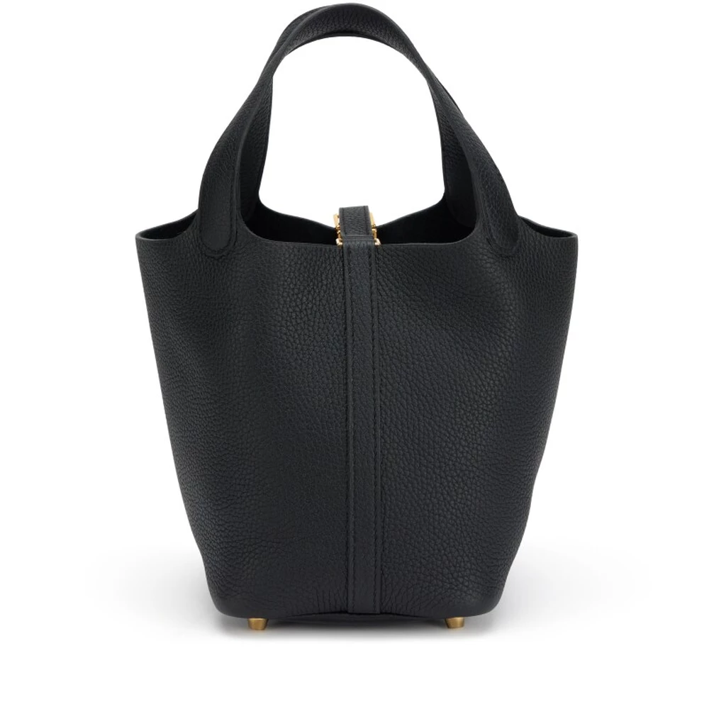 This Hermès Black Clemence Picotin Lock 18 is a timeless and versatile handbag in a classic black shade. The Clemence leather’s supple texture enhances its relaxed yet polished design. The Picotin Lock 18’s open-top structure ensures easy accessibility while maintaining an elegant silhouette. Gold hardware adds a luxurious and sophisticated touch. This Picotin is a wardrobe essential for any Hermès lover.