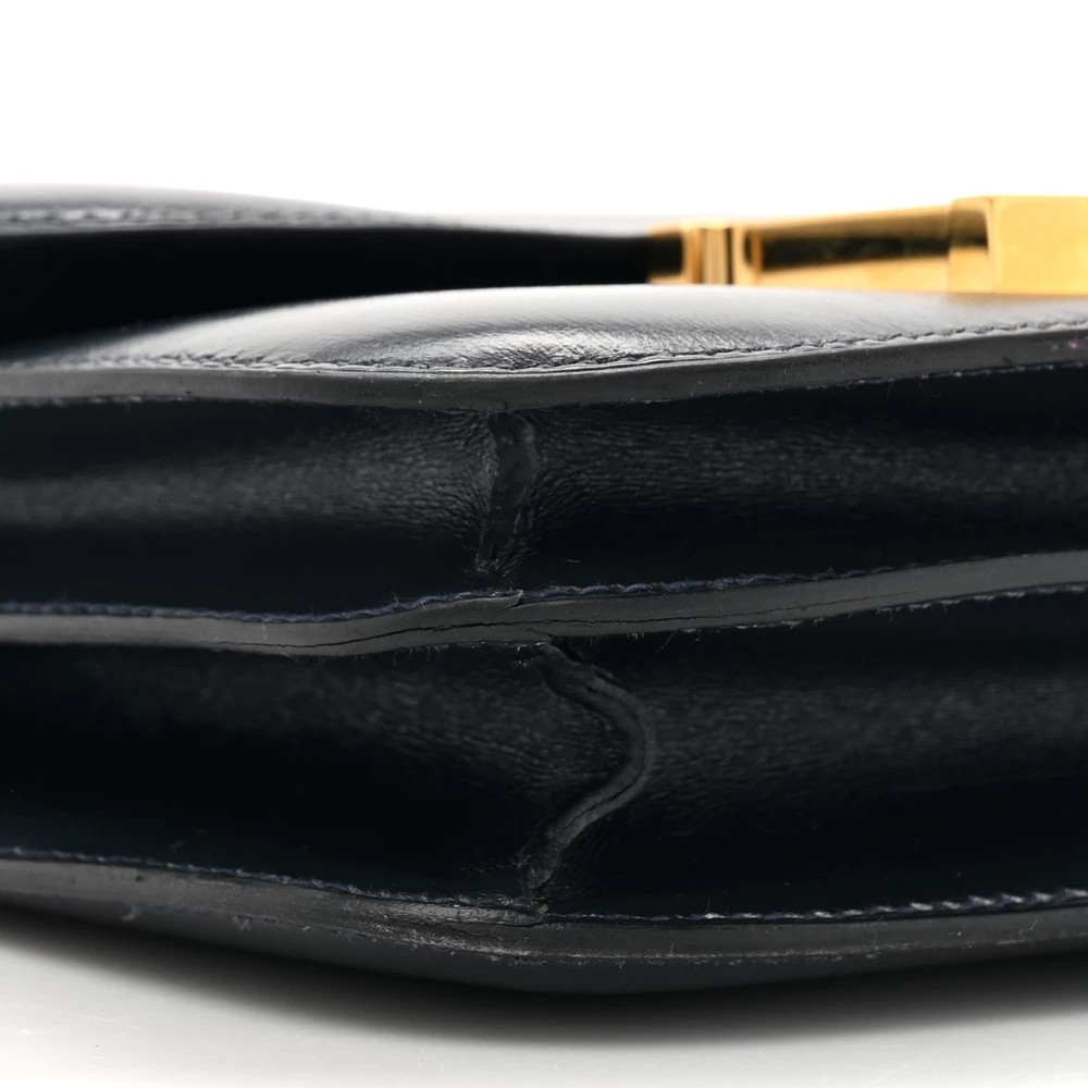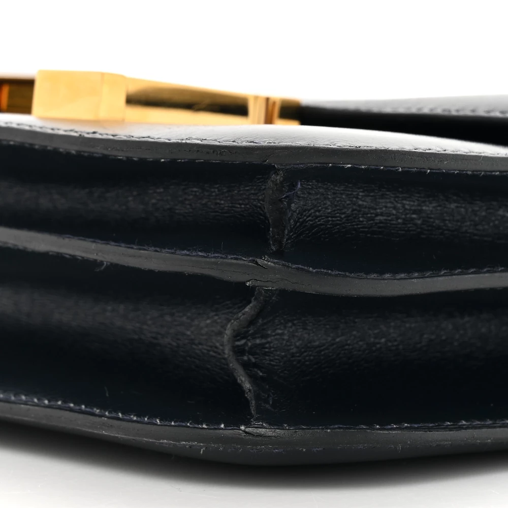 This Hermès Box Constance 18 is a sleek and polished handbag in a timeless shade. The Box leather provides a smooth, glossy finish that develops a rich patina over time. The structured Constance silhouette is complemented by the iconic H clasp. Palladium hardware adds a modern and elegant contrast. This Constance is a refined and sophisticated luxury piece.