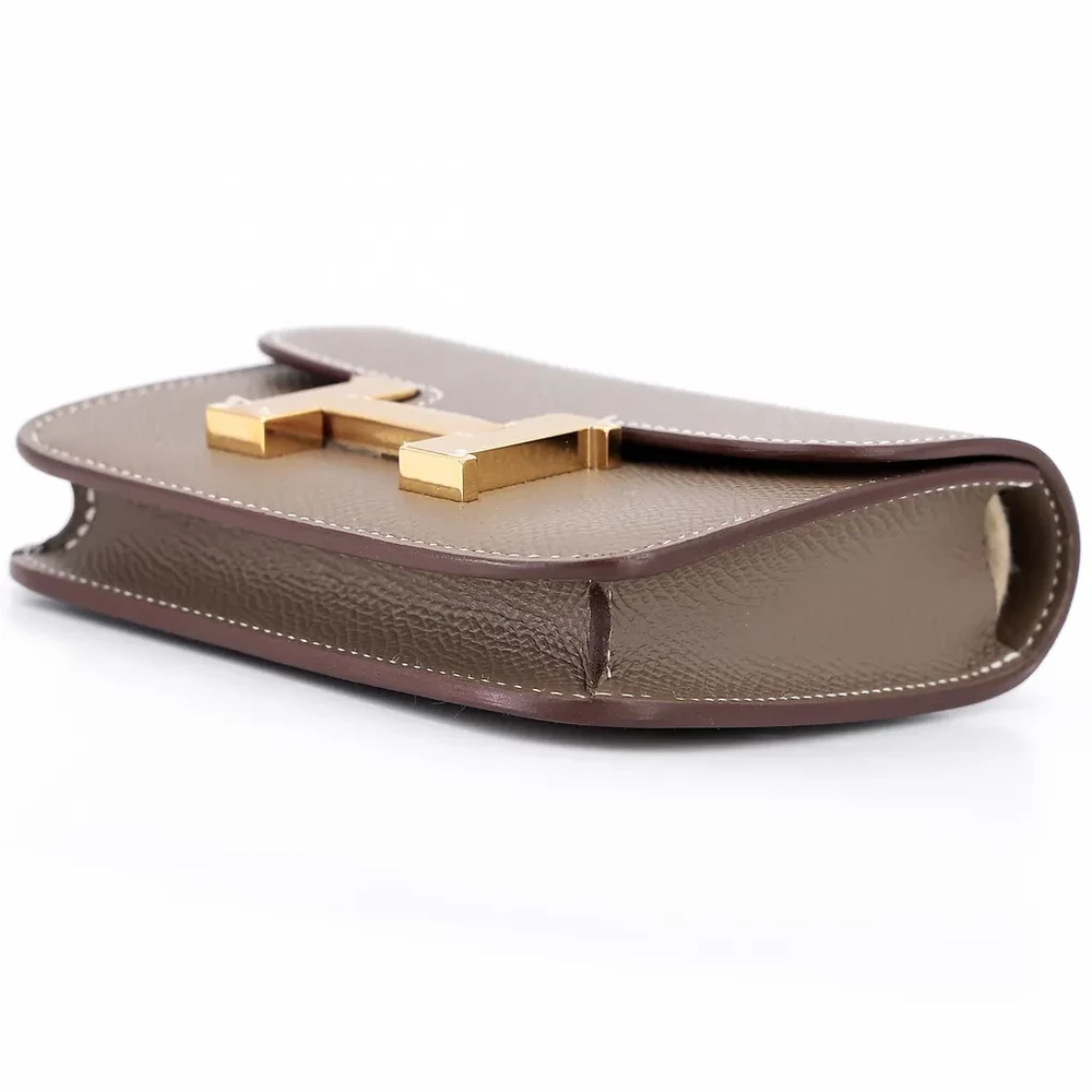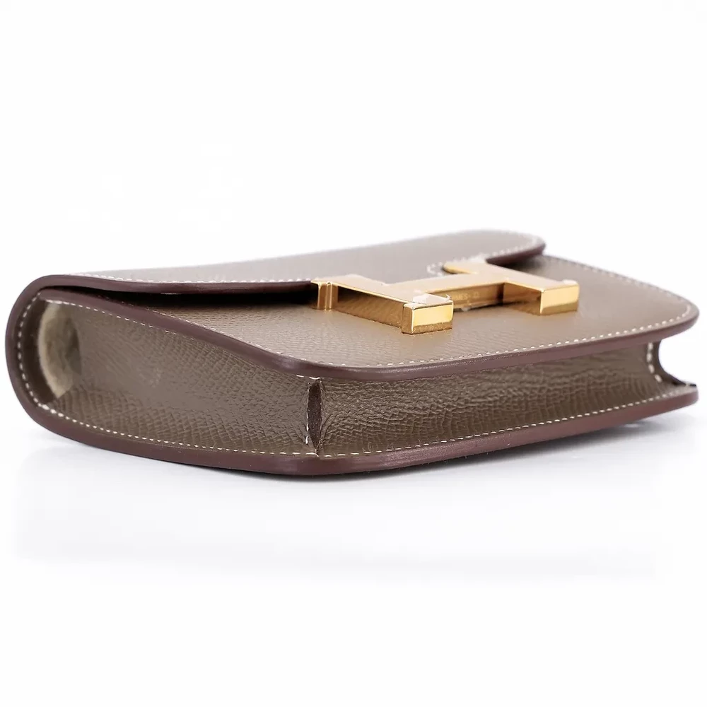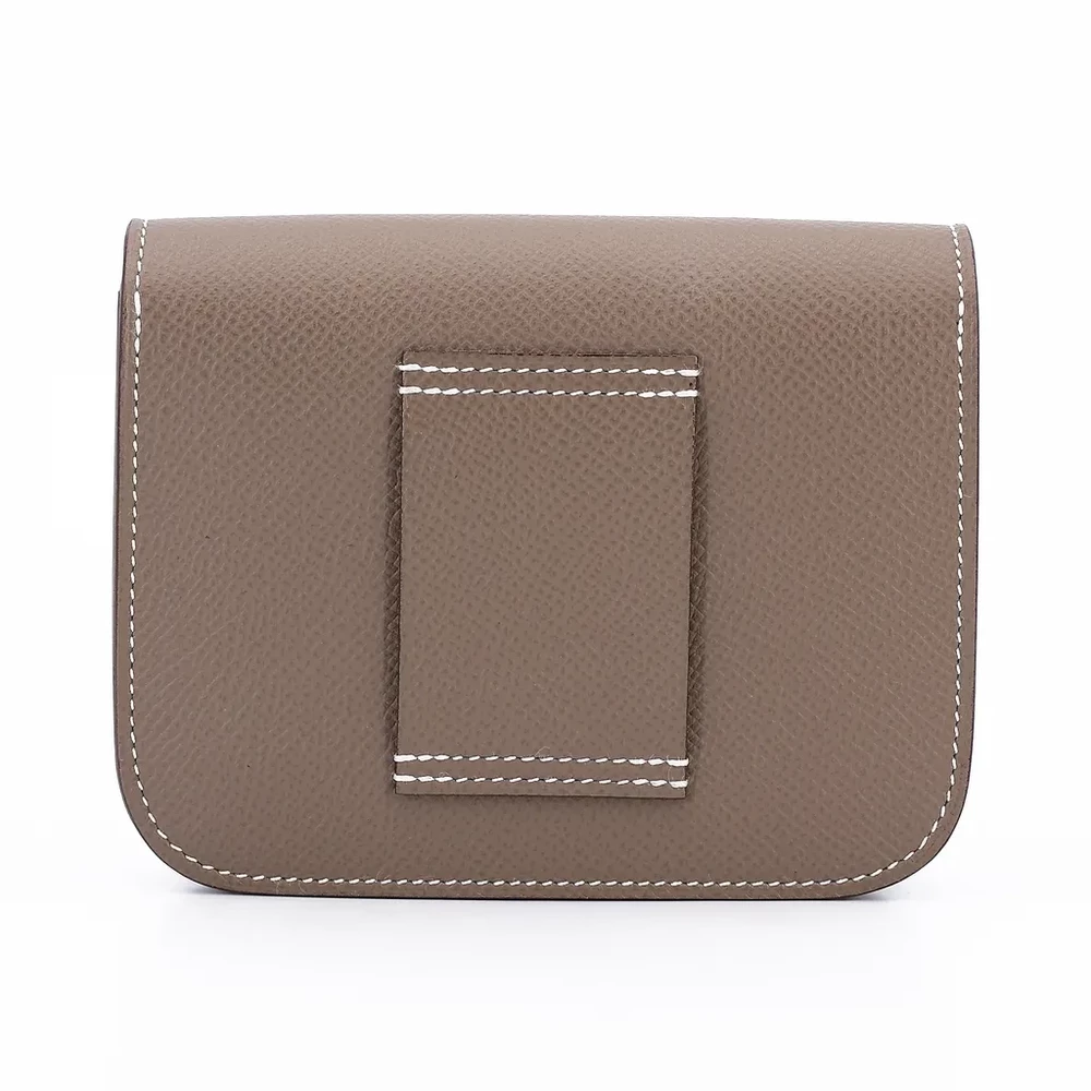 This Hermès Constance Slim Wallet is a sophisticated and practical accessory, crafted from durable Epsom leather in the timeless Etoupe (18) shade. The neutral taupe color is elegantly complemented by luxurious gold hardware, enhancing its refined and versatile aesthetic. Stamped with a “U” for 2022, this wallet showcases Hermès’ commitment to exceptional craftsmanship and timeless design. Measuring approximately 13cm in width, 10cm in height, and 2cm in depth, it offers a sleek yet functional structure for organizing essentials. Accompanied by its original box, dustbag, and receipt, this exquisite piece is available in Hong Kong, making it a coveted addition for collectors and luxury connoisseurs.