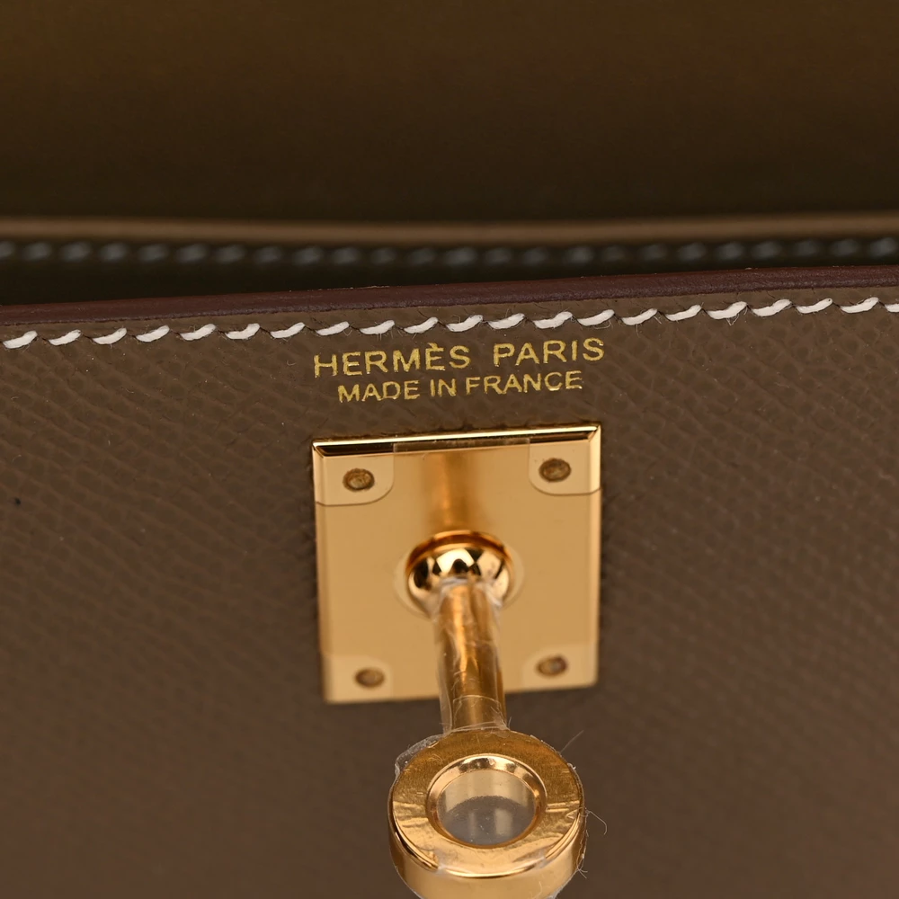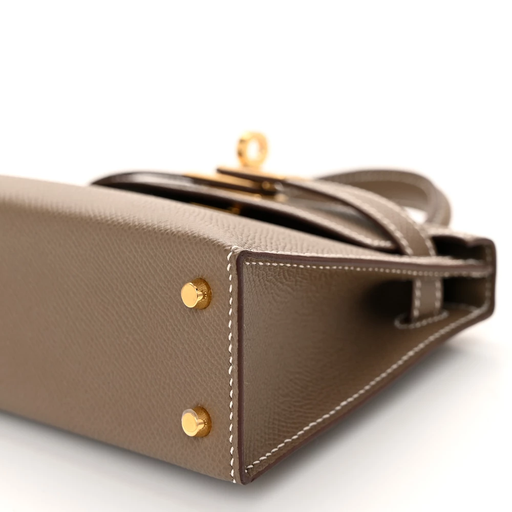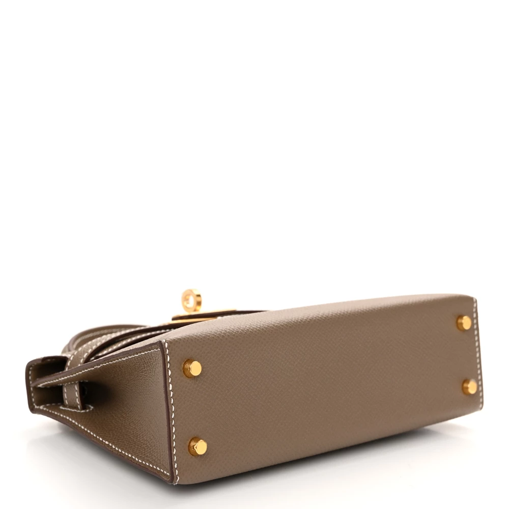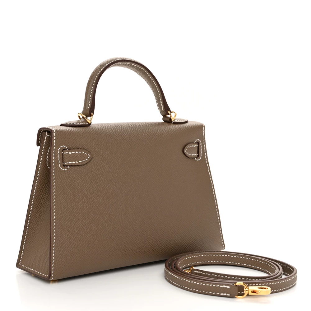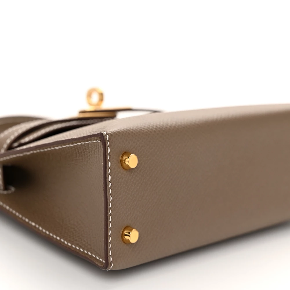 This Hermès Epsom Mini Kelly Sellier 20 Etoupe is a chic and compact handbag in a timeless taupe shade. The Epsom leather provides a polished and scratch-resistant finish, keeping its silhouette crisp. The Sellier construction enhances its structured elegance. Palladium hardware adds a sleek, modern touch. This Mini Kelly is an essential piece for any refined wardrobe.