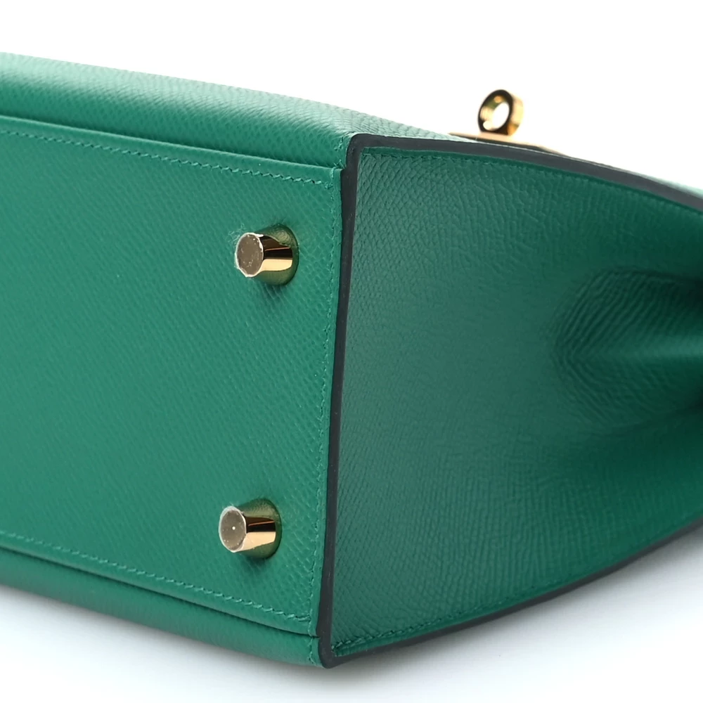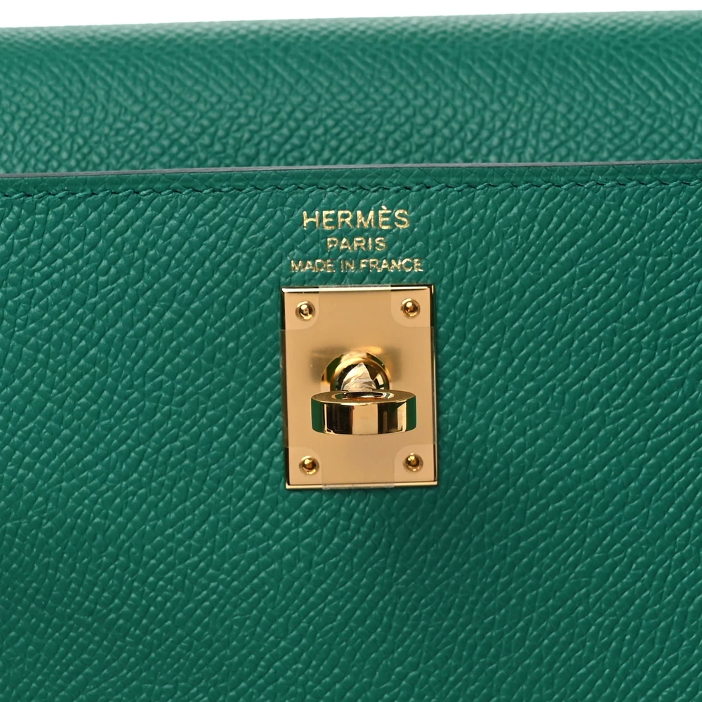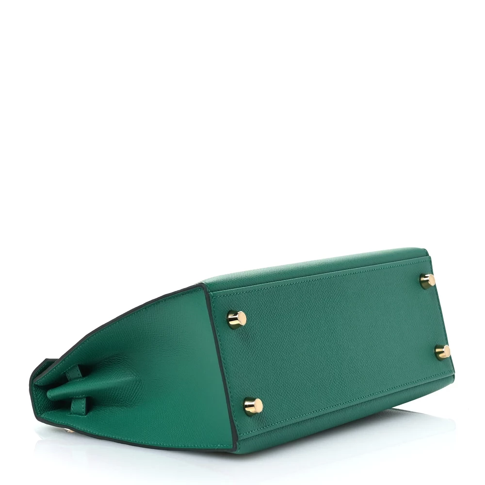 This Hermès Epsom Kelly Sellier 25 Vert Vertigo is a bold and structured handbag in a striking green shade. The Epsom leather offers a scratch-resistant finish, ensuring a sharp silhouette. The Sellier construction enhances its polished and elegant design. Palladium hardware adds a sleek, contemporary touch. This Kelly is a statement piece for those who love vibrant luxury.