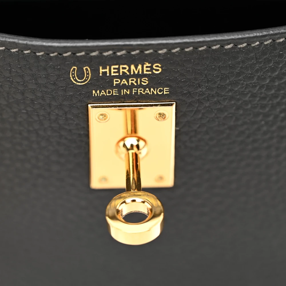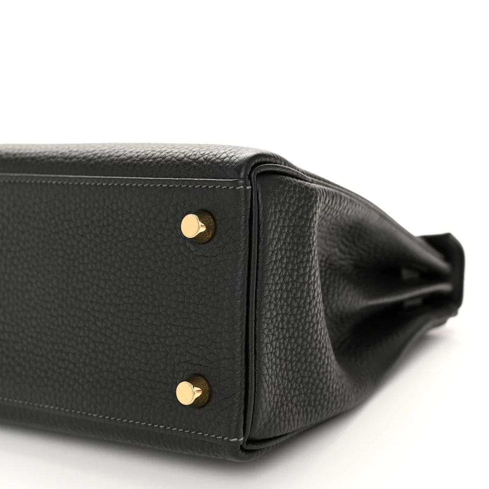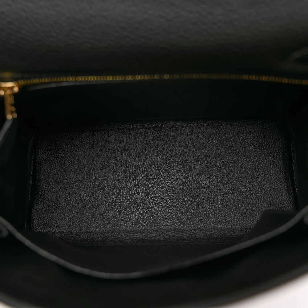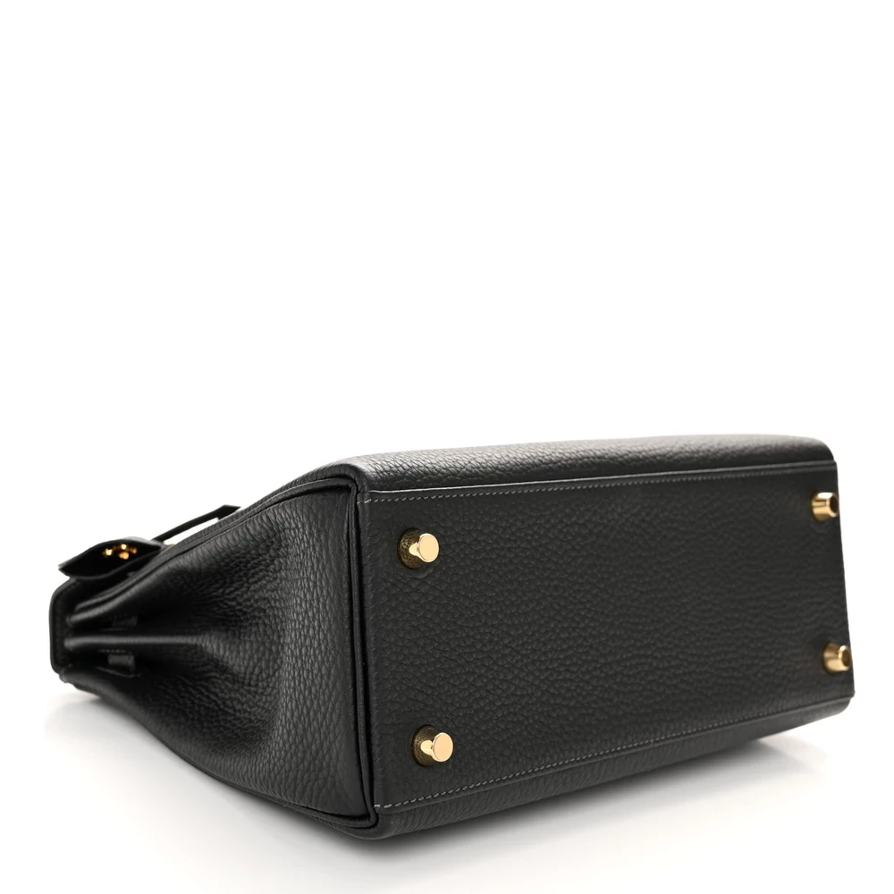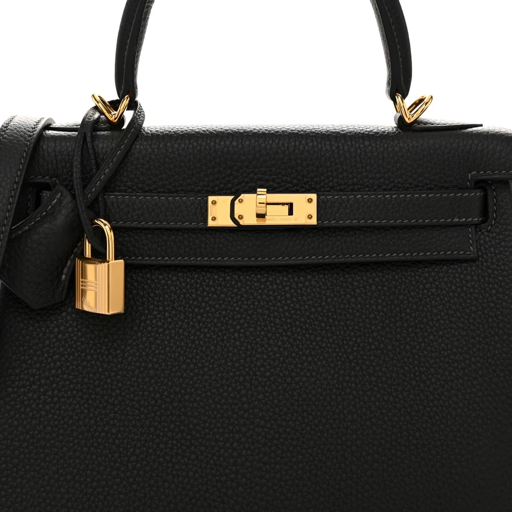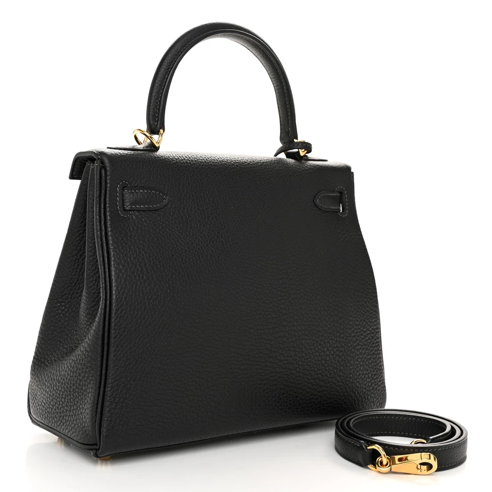 This Hermès Togo Horseshoe Kelly Retourne 25 Black is a rare and customized handbag with the prestigious Horseshoe Stamp. The Togo leather provides a soft, grained texture, ensuring durability while maintaining a relaxed silhouette. The Retourne construction adds to its effortless elegance. Palladium hardware enhances its modern appeal. This Kelly is a highly sought-after collector’s piece.