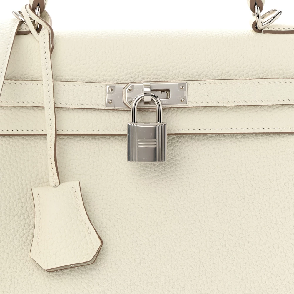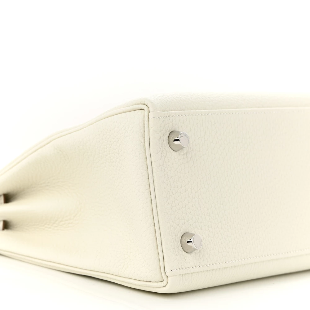This Hermès Togo Kelly Retourne 25 Mushroom is a refined and elegant handbag in a soft, earthy taupe shade. The Togo leather provides a supple, grained texture, ensuring durability while maintaining a slightly relaxed silhouette. The Retourne construction softens its edges for a more casual and effortless aesthetic. Palladium hardware adds a modern contrast. This Kelly is a sophisticated and versatile investment piece.