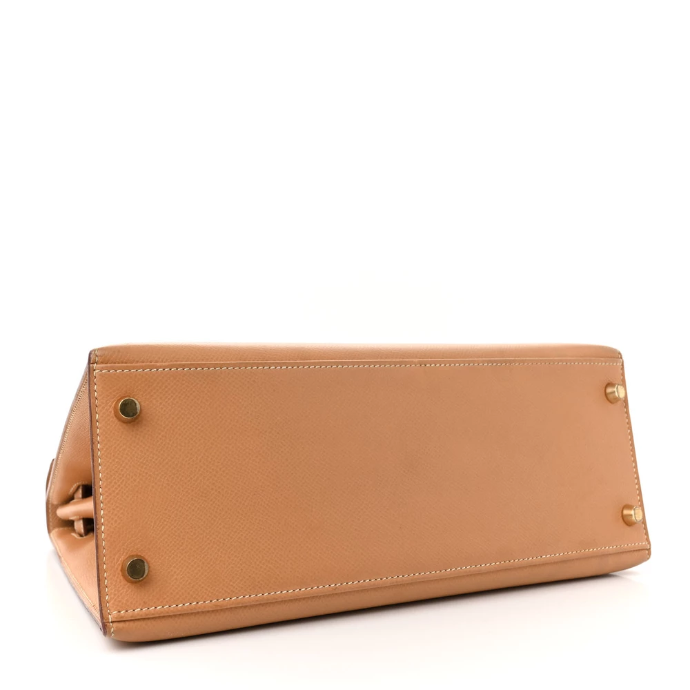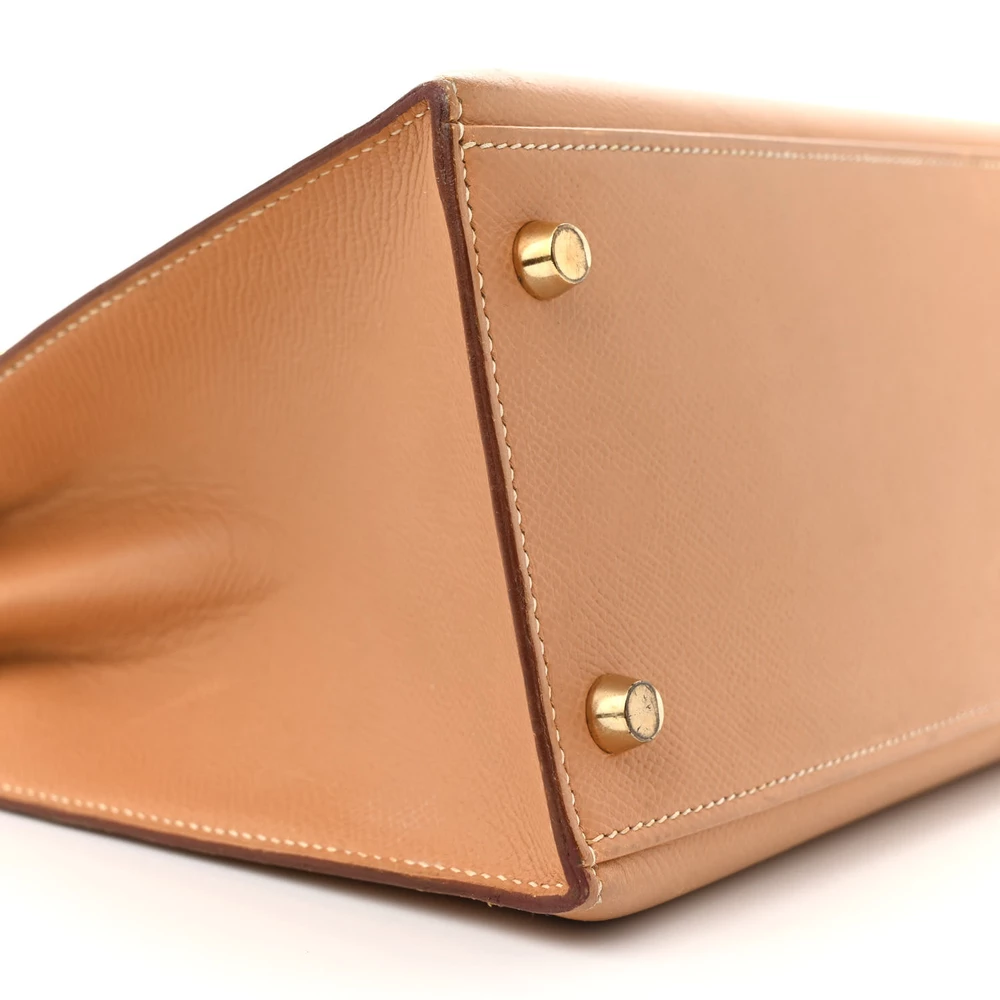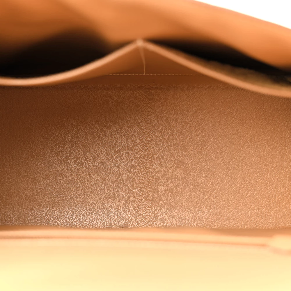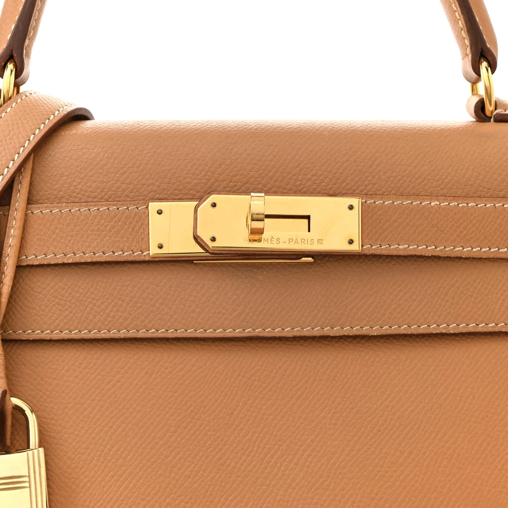 This Hermès Courchevel Kelly Sellier 28 Sable is an elegant and structured handbag in a soft beige hue. The Courchevel leather offers a textured, semi-glossy finish with excellent durability. The Sellier construction enhances its sharp and refined silhouette. Gold hardware adds a touch of warmth and classic luxury. This Kelly is a timeless and sophisticated wardrobe staple.