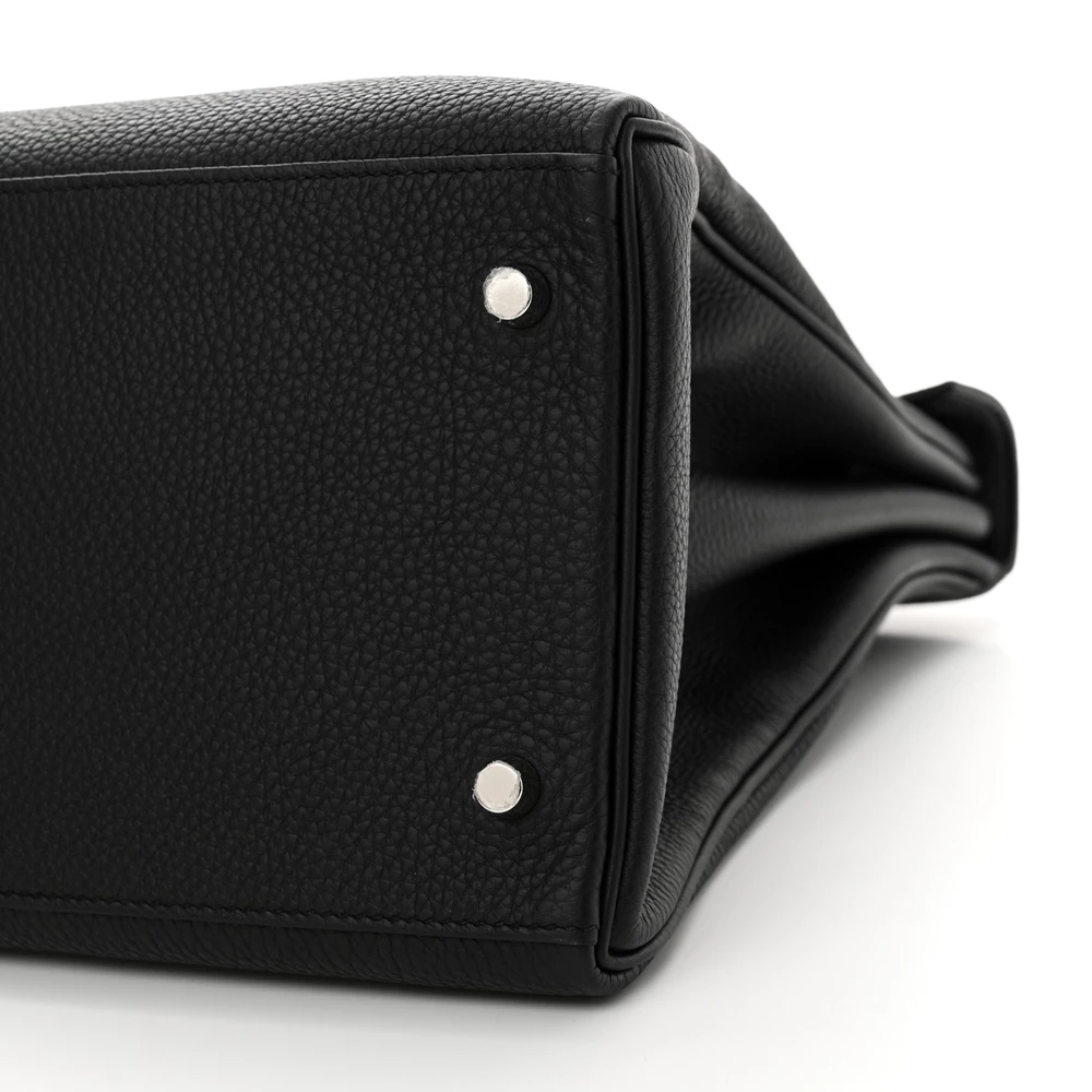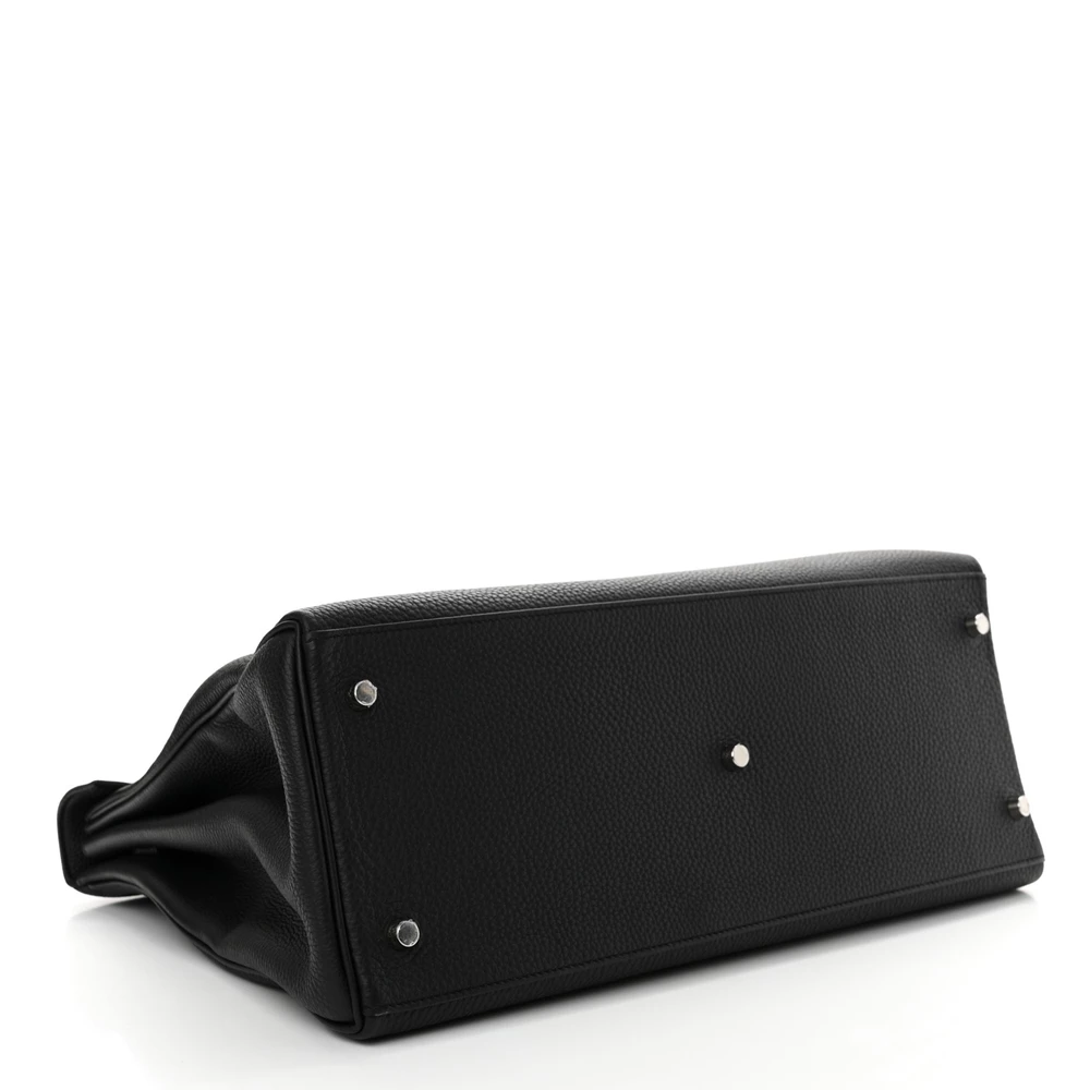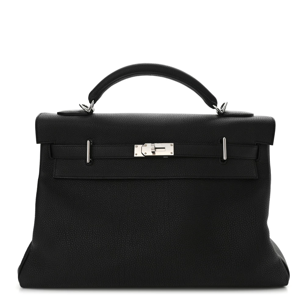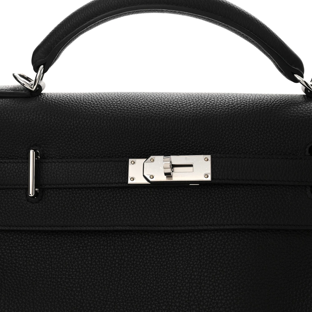 This Hermès Togo Maxi Kelly Retourne 42 Black is a bold and oversized take on the classic Kelly bag in a timeless black shade. The Togo leather offers a supple, grained texture, ensuring durability and a slightly relaxed structure. The Retourne construction softens its edges for a more casual and effortless look. Palladium hardware adds a modern contrast. This Kelly is a spacious and striking luxury essential.