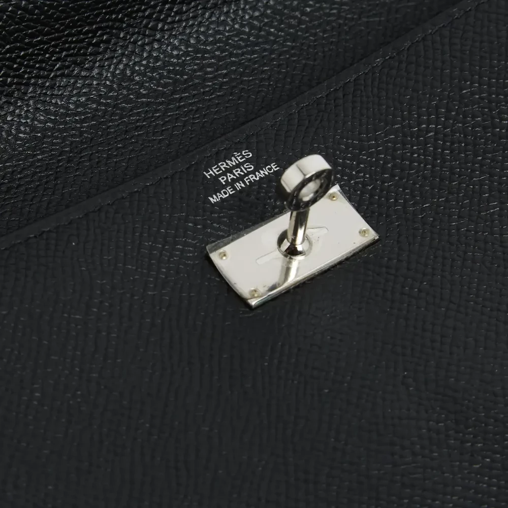 This Hermès Portefeuille Pochette Kelly Wallet Clutch in Black Epsom Leather from 2010 is a classic and elegant accessory. The structured Epsom leather enhances its refined appearance, while the Kelly-style turn-lock closure adds a signature Hermès touch. Designed as both a wallet and clutch, it provides versatility without compromising on sophistication. A timeless investment piece for those who appreciate understated luxury.