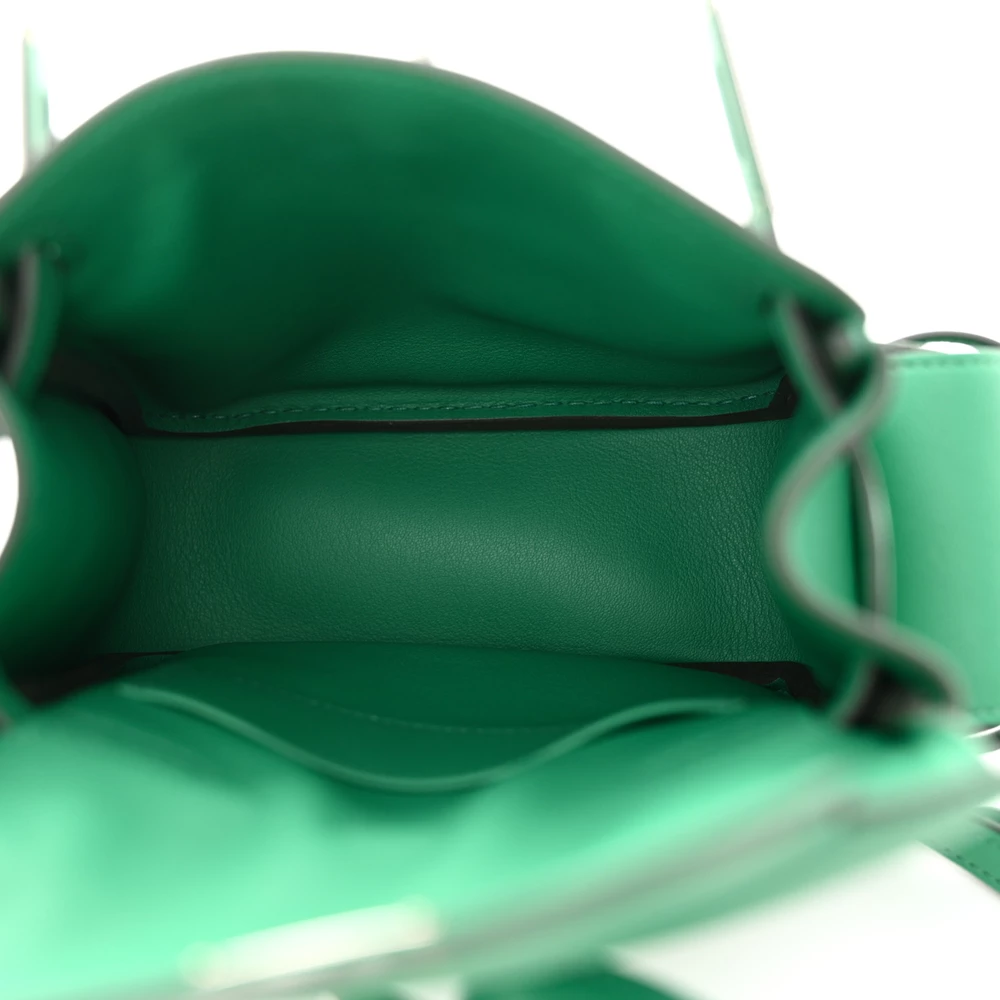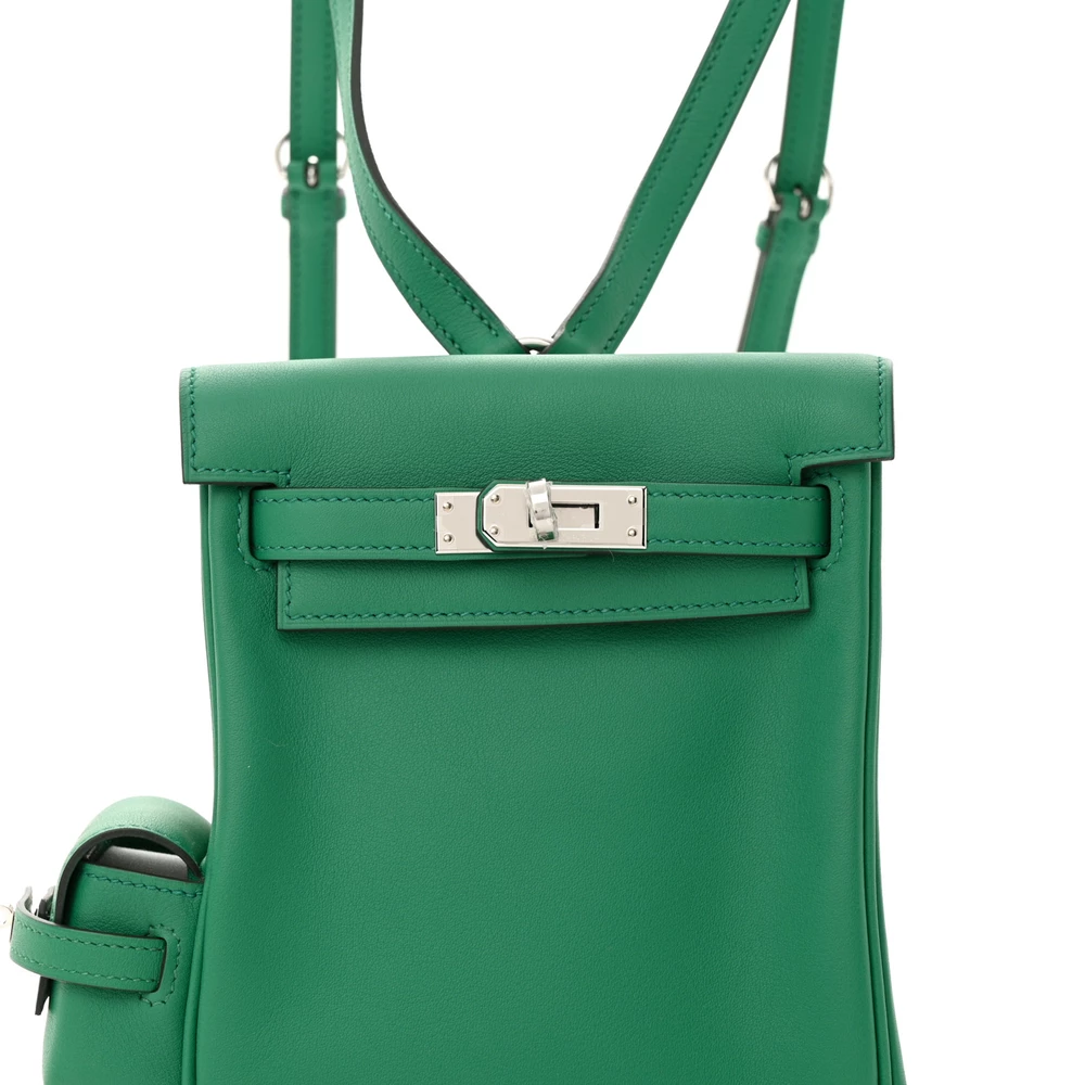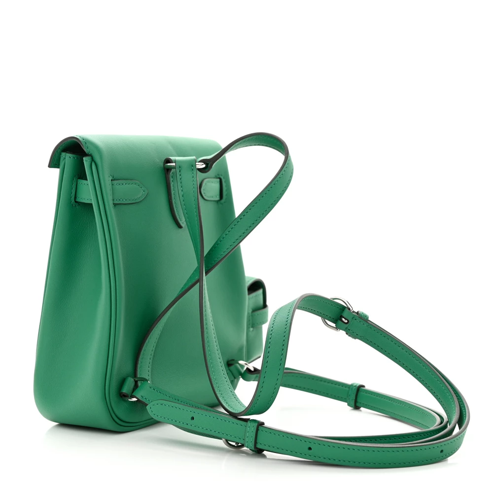 This Hermès Swift Kelly Jump Backpack Vert Vertigo is a bold and modern take on the classic Kelly in a striking green shade. The Swift leather offers a smooth and supple texture, ensuring a soft yet luxurious feel. The backpack design adds a practical and contemporary touch to its timeless appeal. Palladium hardware enhances its sleek and stylish aesthetic. This Kelly is a vibrant and functional statement piece.
