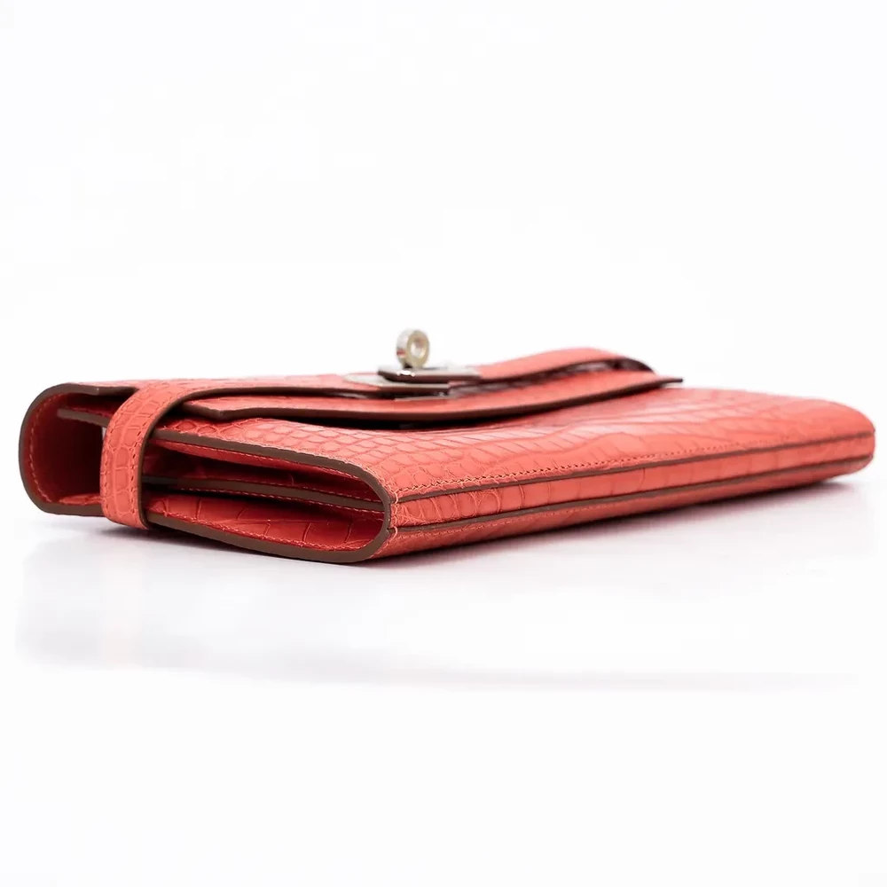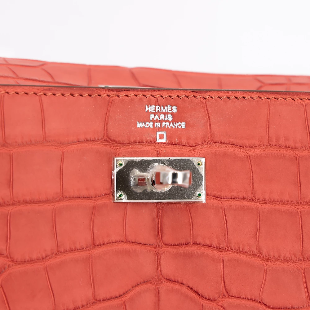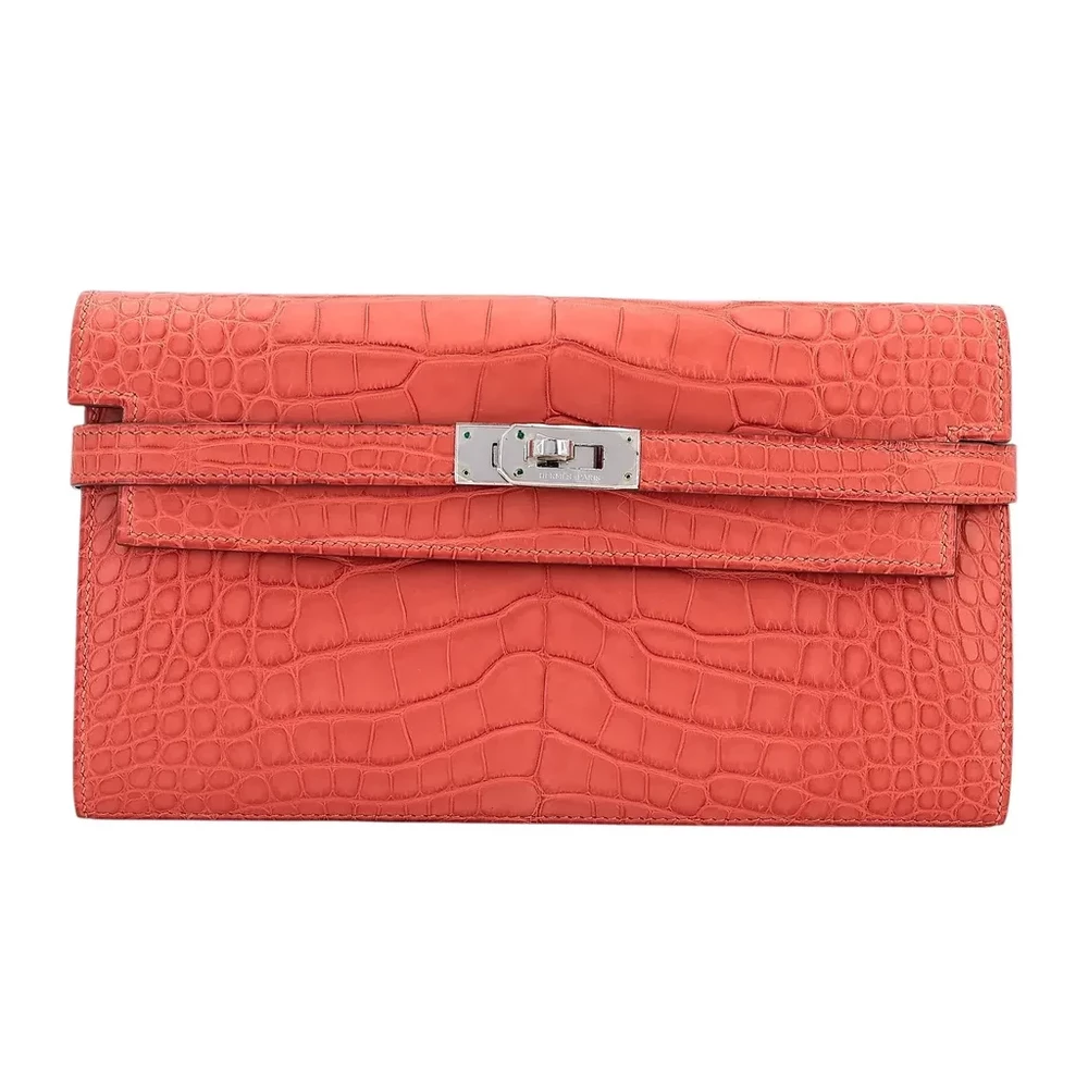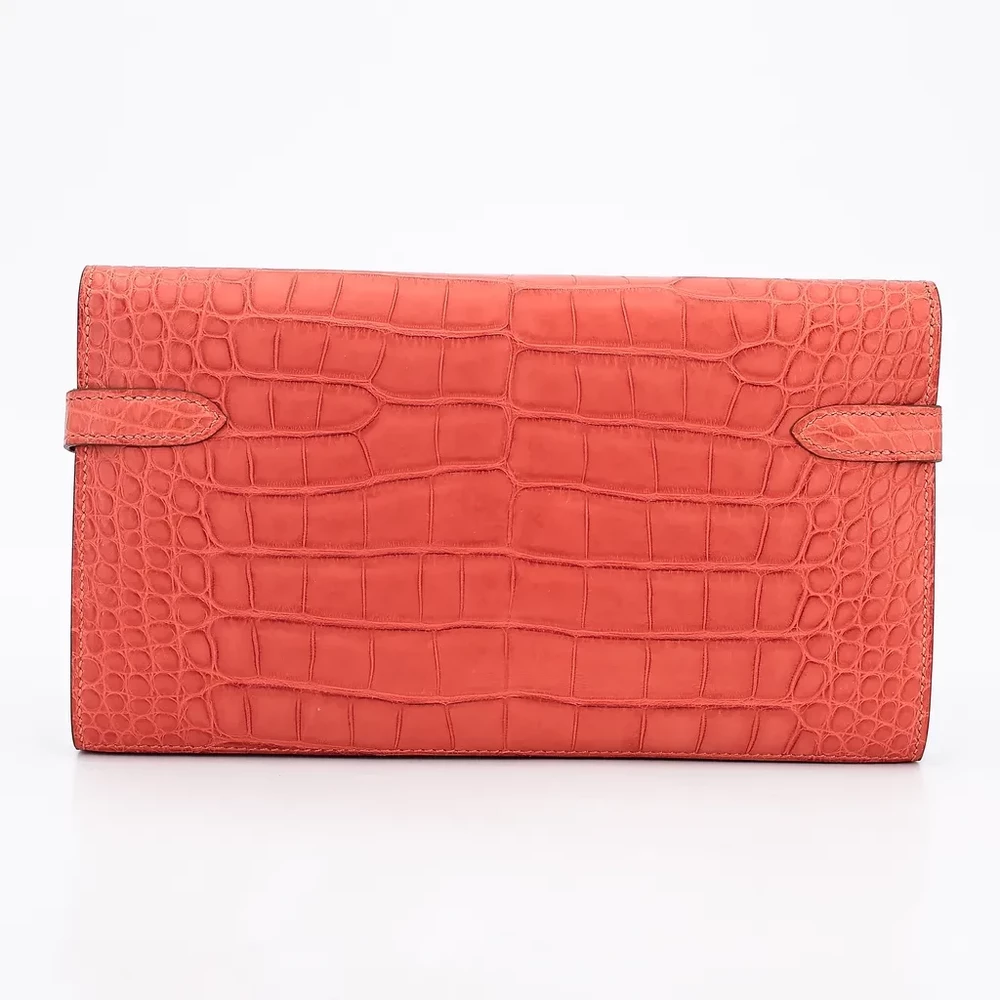 An embodiment of quiet confidence, this Kelly Wallet is rendered in the highly coveted Matte Sanguine Alligator. The scales are meticulously selected for their symmetrical grain, offering a tactile depth that only genuine exotic skins can provide. The Sanguine hue—a sophisticated, earthy red—is balanced perfectly by the cool, substantial weight of the Palladium Hardware.