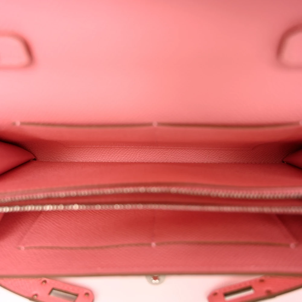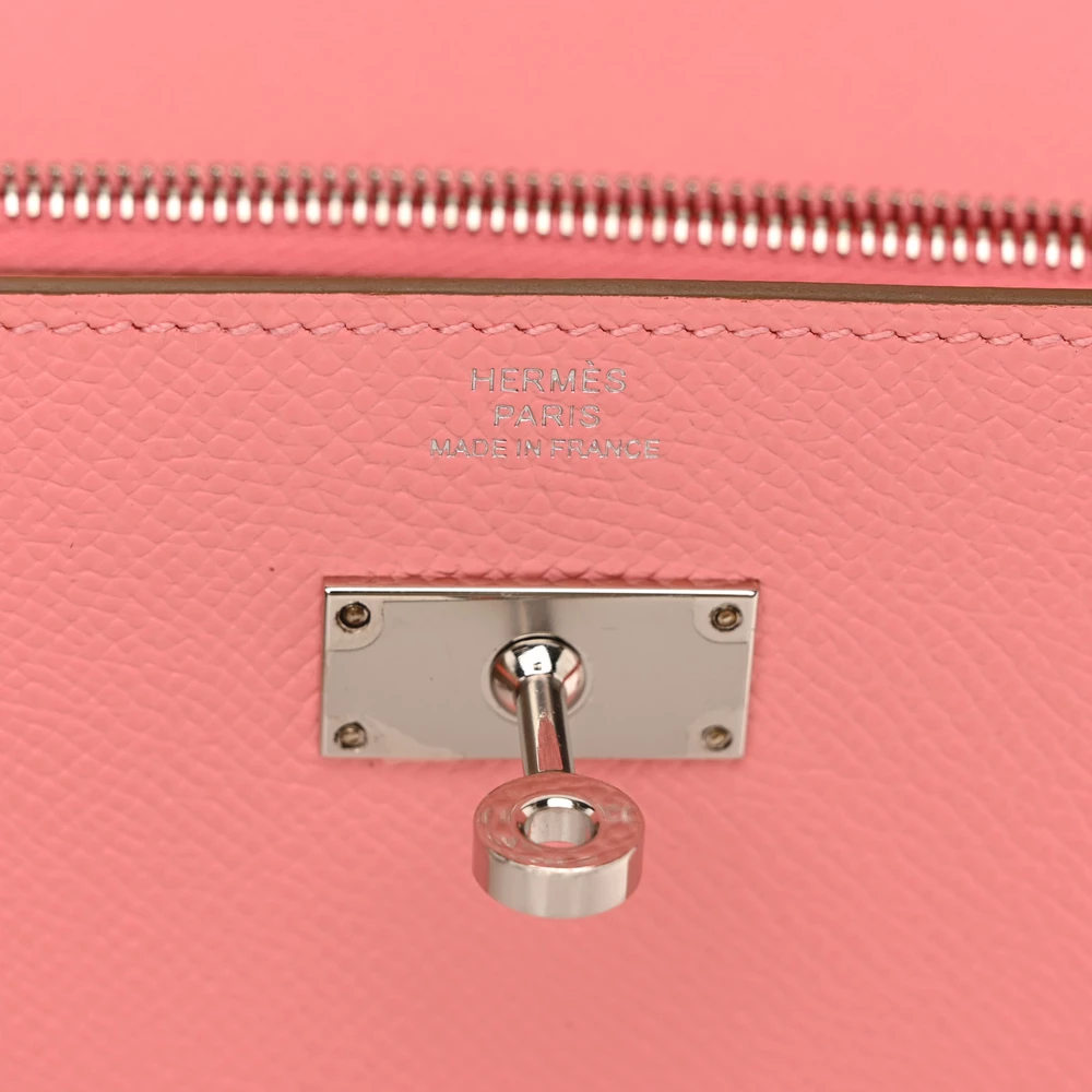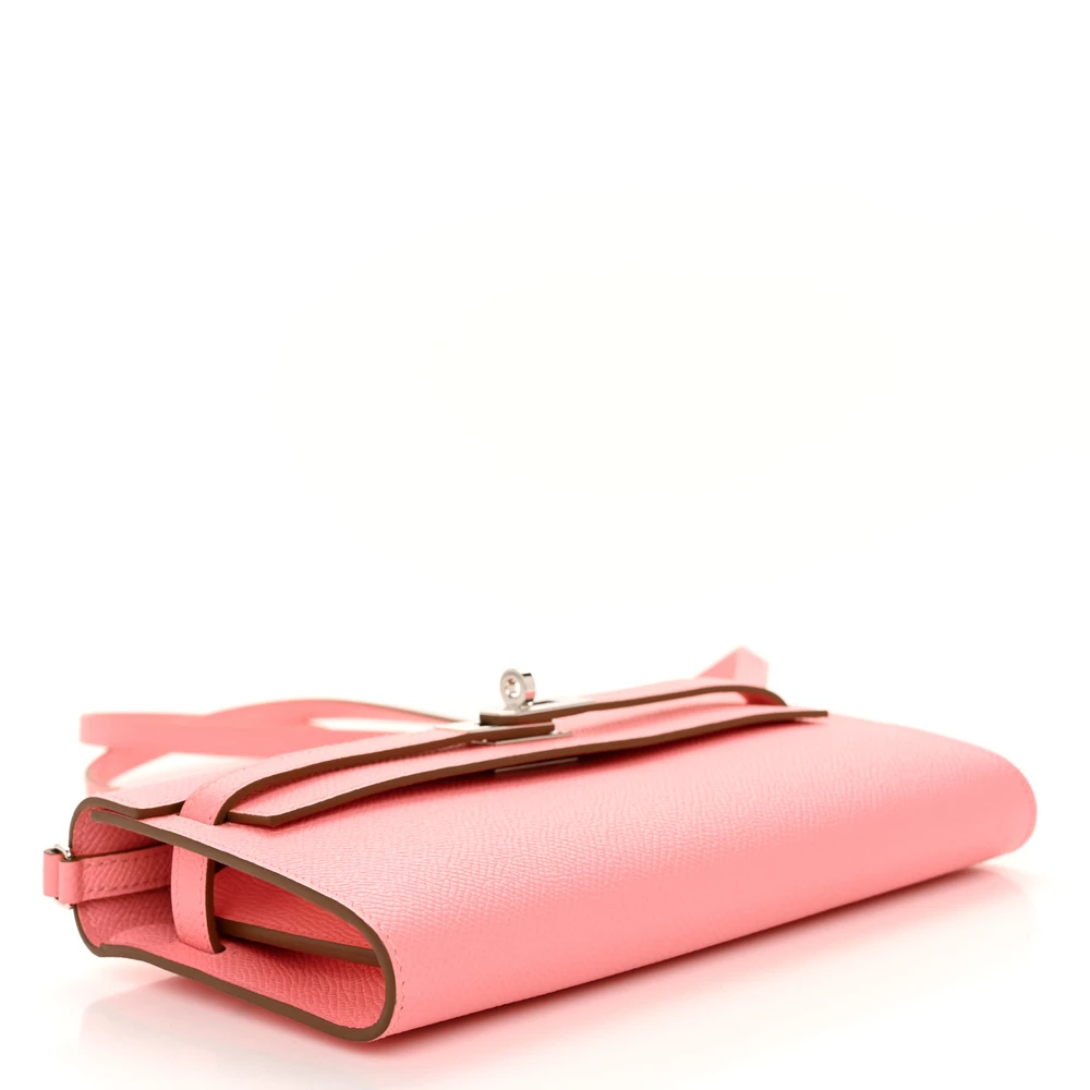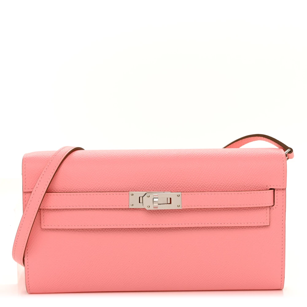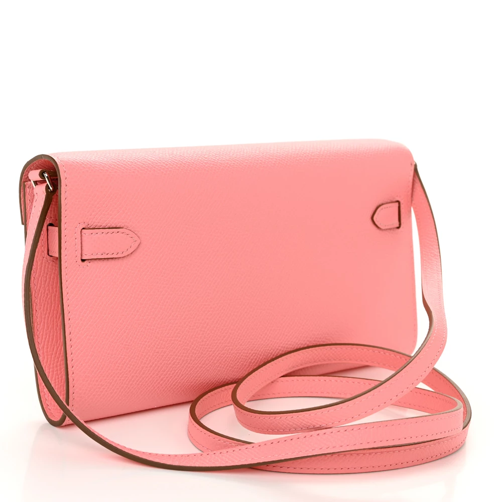 This Hermès Epsom Kelly Wallet To Go Rose Confetti is a playful and refined accessory in a lively pink hue. The Epsom leather offers a structured, scratch-resistant finish, maintaining its polished silhouette. The Wallet To Go design provides hands-free versatility with its detachable strap. Palladium hardware adds a modern contrast. This wallet is a chic and functional luxury essential.