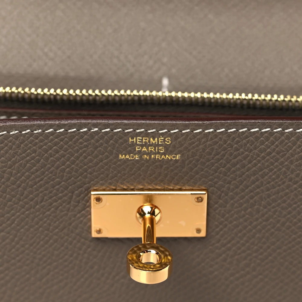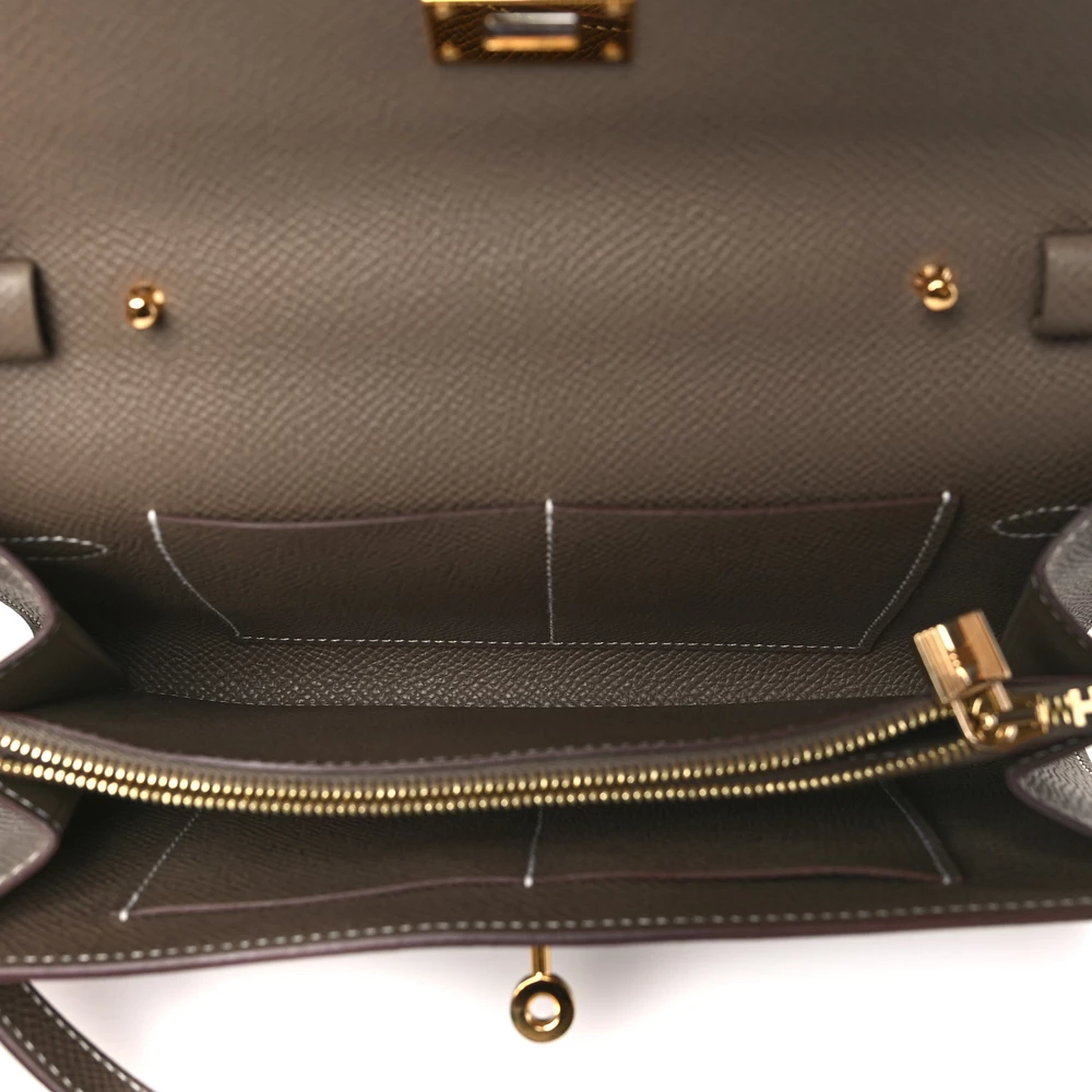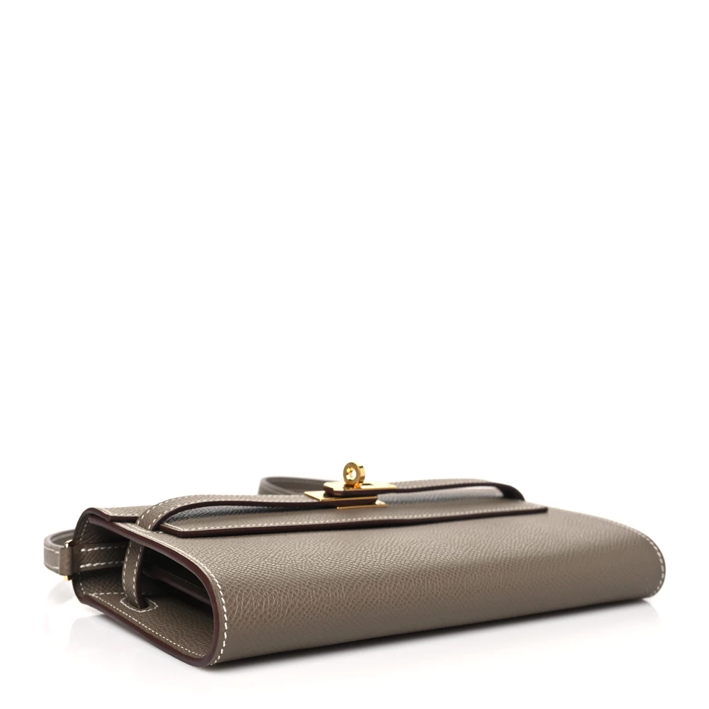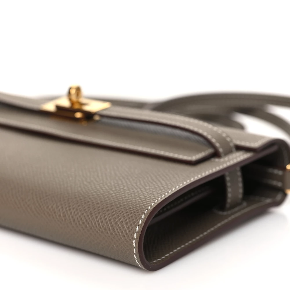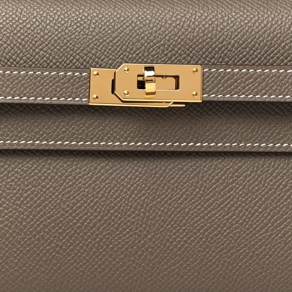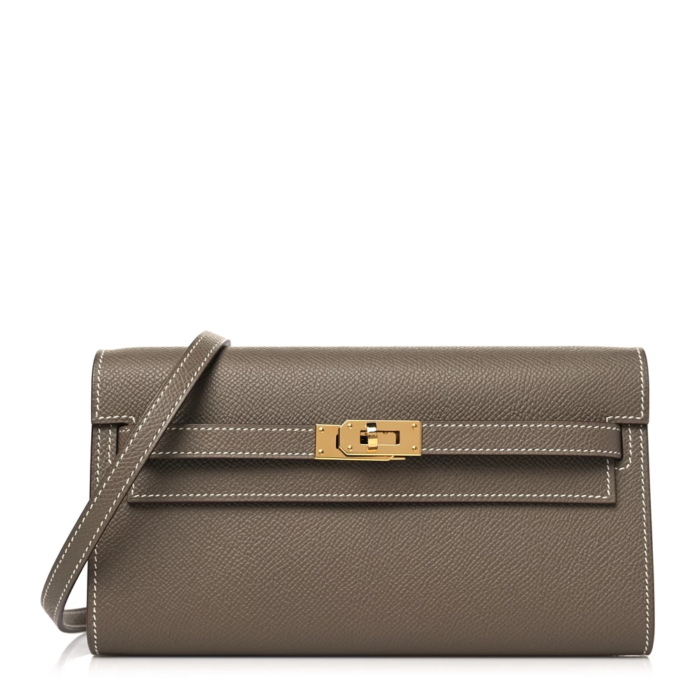 This Hermès Epsom Kelly Wallet To Go in Etoupe is a sophisticated blend of luxury and practicality. The neutral Etoupe shade pairs seamlessly with durable Epsom leather, offering a timeless and structured aesthetic. Featuring the signature Kelly lock closure, it exudes elegance while keeping essentials secure. Designed with a detachable strap, it can transition from wallet to a chic crossbody. A versatile must-have for the modern collector.