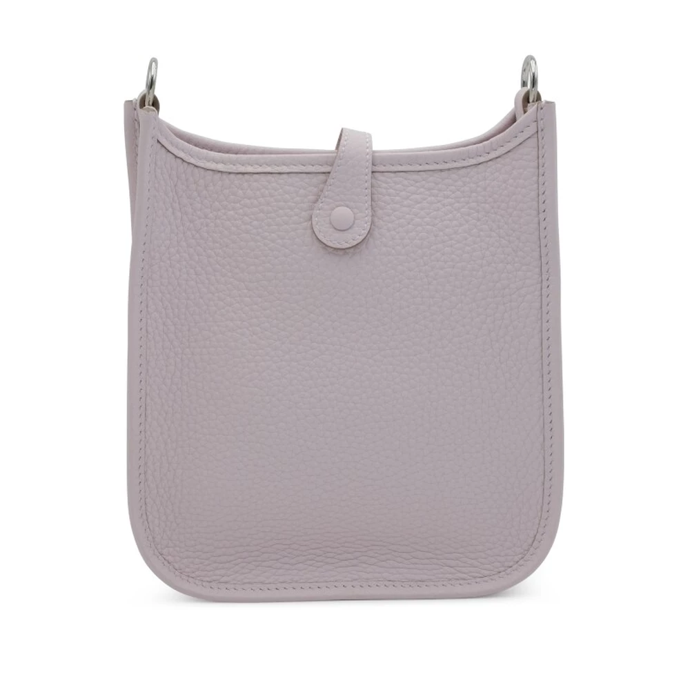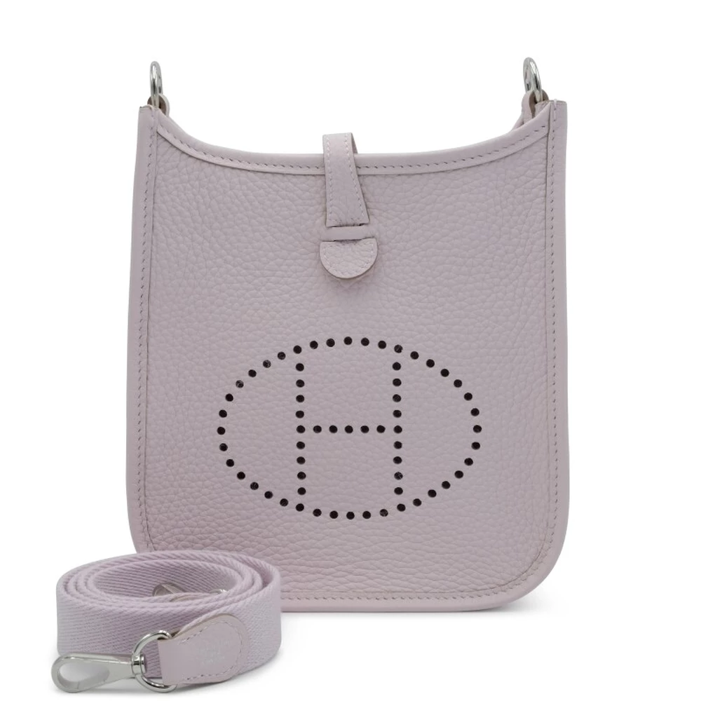This Hermès Mauve Pâle Clémence Mini Evelyne II TPM 16 with Palladium Hardware is a soft and feminine handbag in a delicate muted lavender shade. The supple Clémence leather enhances its gentle sophistication, while the palladium hardware keeps the look sleek. The perforated “H” logo and compact silhouette make it a charming everyday choice.