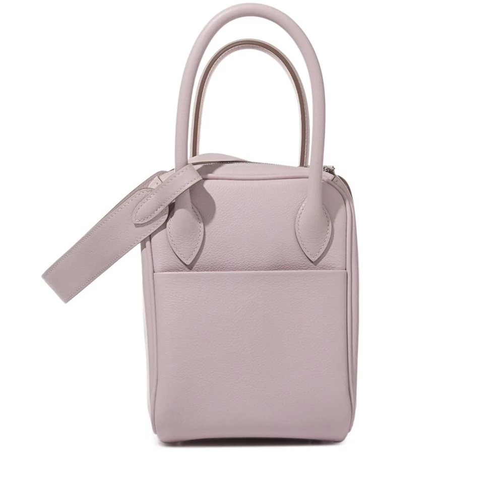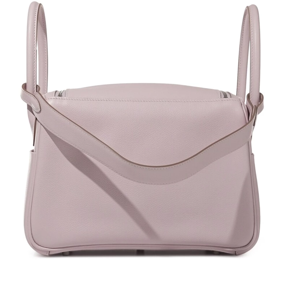 This Hermès Mauve Pâle Swift Lindy 26 with Palladium Hardware is a soft and elegant handbag in a delicate lavender hue. The smooth Swift leather enhances its refined structure, while the palladium hardware maintains a sleek, contemporary look. Its medium size makes it a perfect blend of style and practicality.