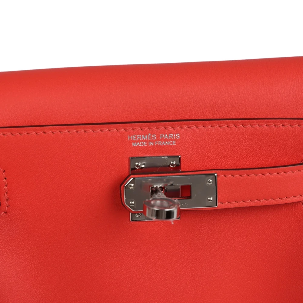 This Hermès Mini Kelly Jump Backpack in Orange Field is a playful and stylish accessory. Made from Swift leather, it features a compact design. The Palladium hardware adds a modern touch. Its vibrant orange hue is perfect for adding a pop of color to your wardrobe. The adjustable straps offer versatility. A must-have for any fashion enthusiast. This bag is a true statement of style.