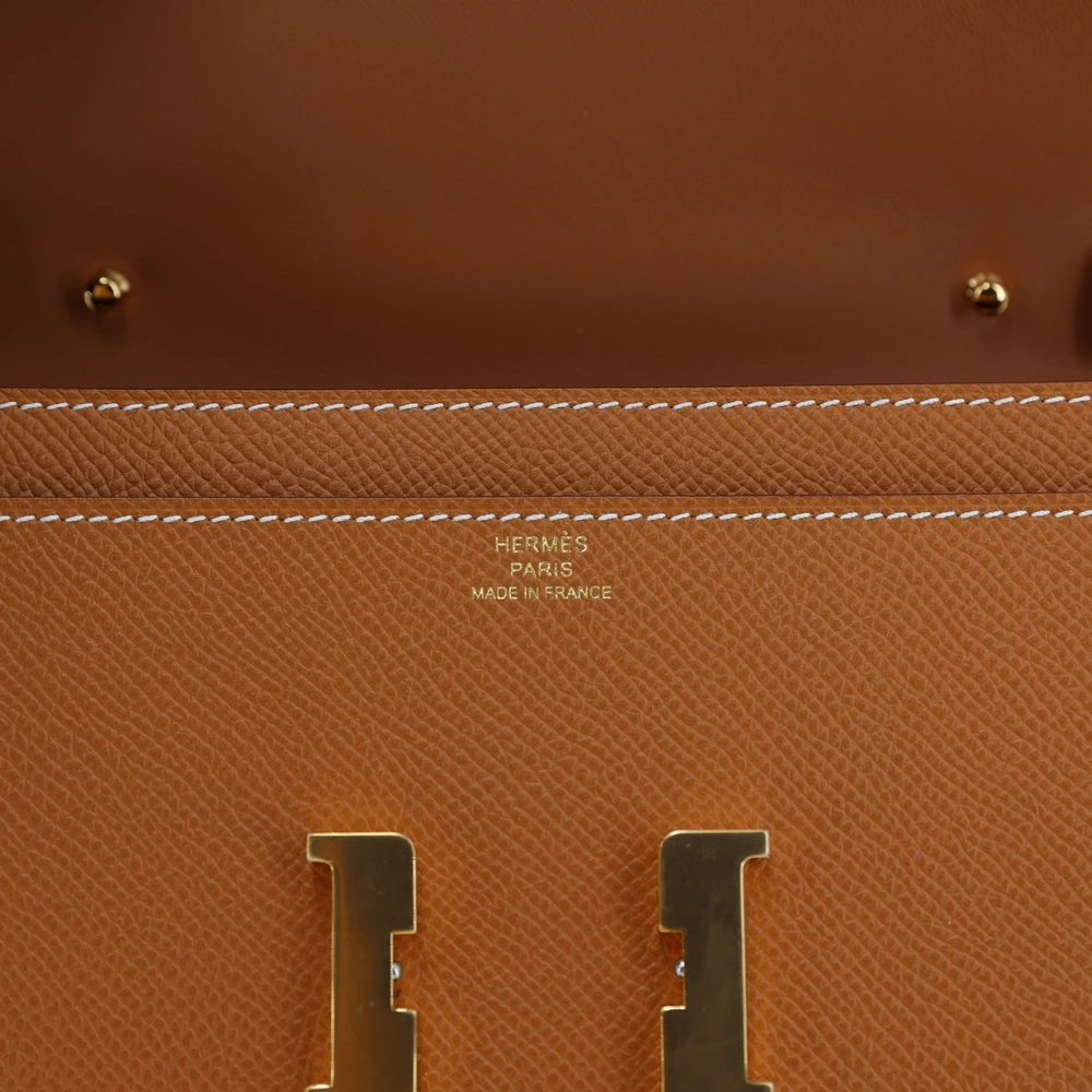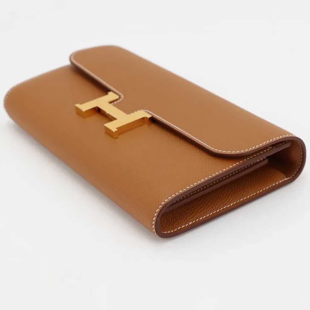 This Hermès Constance To Go long wallet is a timeless and elegant accessory, crafted from durable Epsom leather in the classic Gold (37) shade. The warm caramel hue is beautifully complemented by matching gold hardware, creating a sophisticated and luxurious aesthetic. Stamped with a “W” for 2024, this piece showcases Hermès’ impeccable craftsmanship and attention to detail. Measuring approximately 20.5cm in width and 11.5cm in height, it features a detachable 122cm shoulder strap, offering versatile styling options. Accompanied by its original box, copy of the receipt, and felt protector, this exquisite wallet is available in Singapore, making it a coveted addition for collectors and luxury enthusiasts alike.