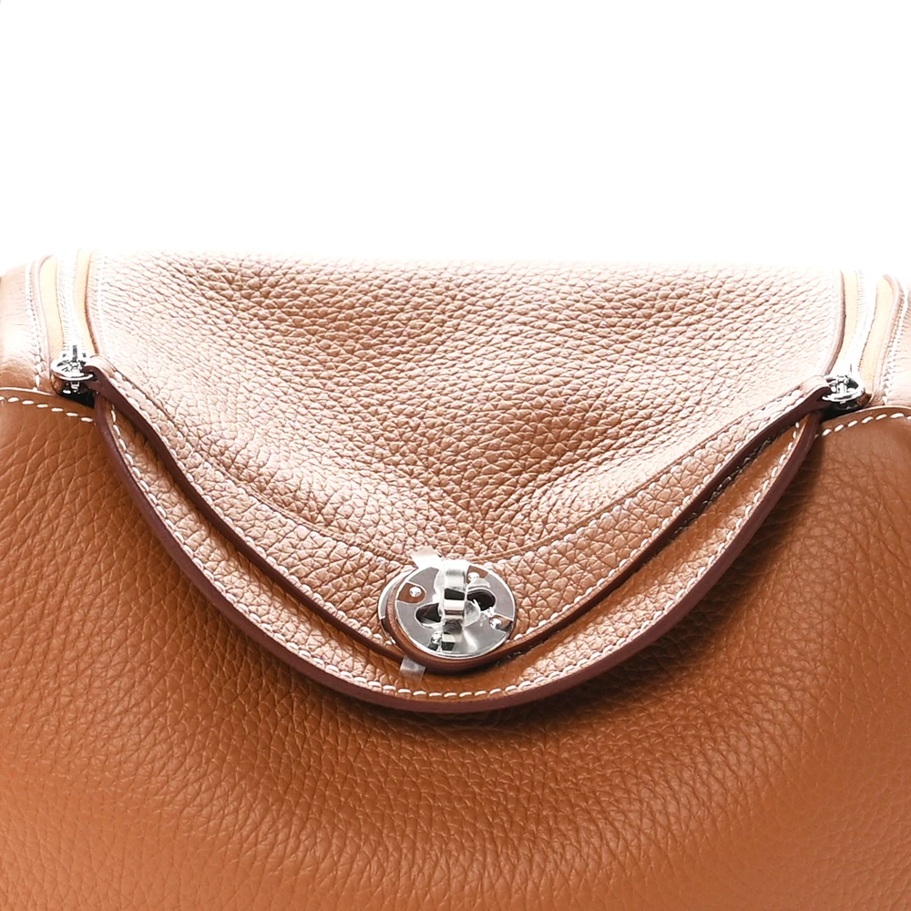 This Hermès Taurillon Clémence Lindy 26 in Gold is a sophisticated and practical handbag in a warm tan shade. The grained Clémence leather provides a relaxed yet polished silhouette, making it an everyday essential. Gold hardware complements the tone beautifully, adding a touch of refined luxury. Spacious and timeless, it’s a wardrobe staple.
