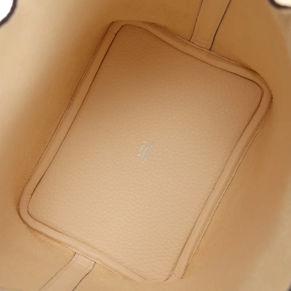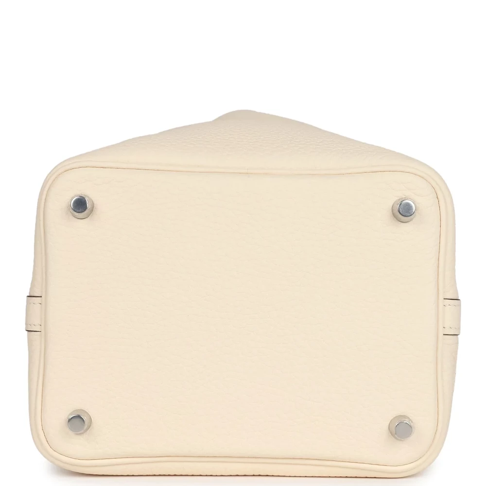 This Hermès Nata Clémence Picotin 18 with Palladium Hardware is a soft and neutral handbag in a creamy off-white shade. The supple Clémence leather gives it a relaxed and luxurious feel, while the palladium hardware offers a modern touch. The bucket-style silhouette keeps it effortlessly chic. This Picotin is a versatile and timeless piece for any collection.