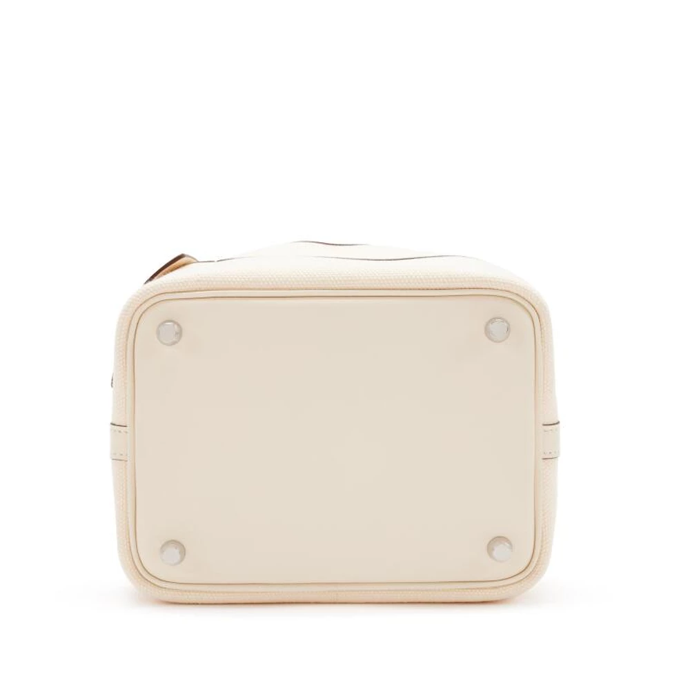 This Hermès Nata Swift and Toile Goéland Cargo Picotin Lock 18 PM with Palladium Hardware is a neutral and stylish handbag with a mix of smooth Swift leather and structured Toile canvas. The creamy Nata shade exudes understated luxury, while the cargo pockets offer additional practicality. The palladium hardware adds a crisp and modern contrast. This Picotin is a sophisticated yet functional choice for any collection.