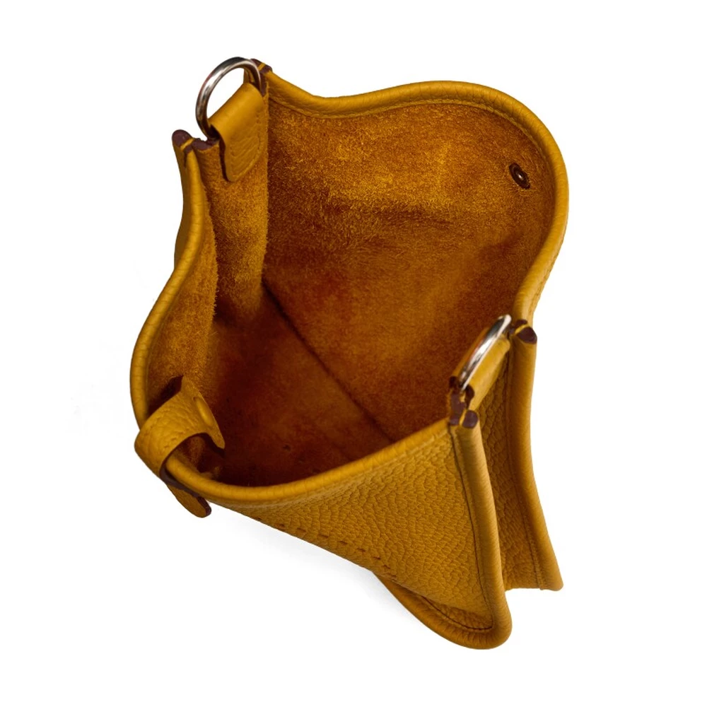 This Hermès Natural Sable Clémence Evelyne TPM 16 with Palladium Hardware is a warm and earthy crossbody bag in a sandy beige tone. The soft Clémence leather ensures a relaxed yet structured silhouette, while the palladium hardware provides a cool contrast. The perforated “H” logo and compact design make it a refined everyday staple.