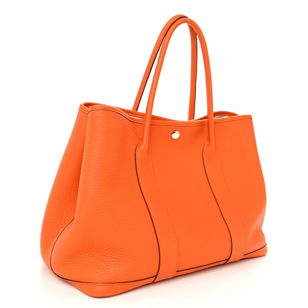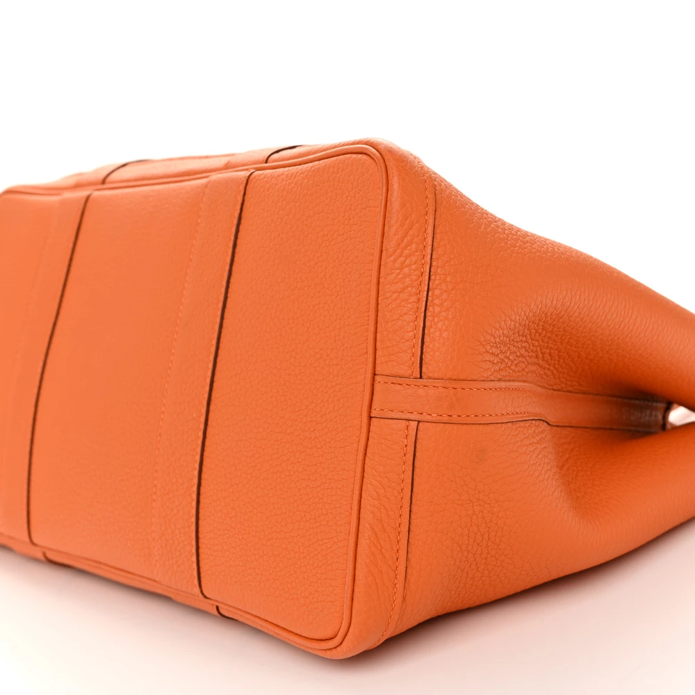 This Hermès Garden Party 36 MM in Orange Negonda Leather is a bold and lively tote that exudes confidence. The Negonda leather provides a smooth and slightly structured finish, ensuring both durability and timeless elegance. Its spacious design allows for effortless organization, making it ideal for daily use. The bright orange shade adds a playful yet sophisticated touch to any ensemble. This statement piece is perfect for those who appreciate bold color choices.