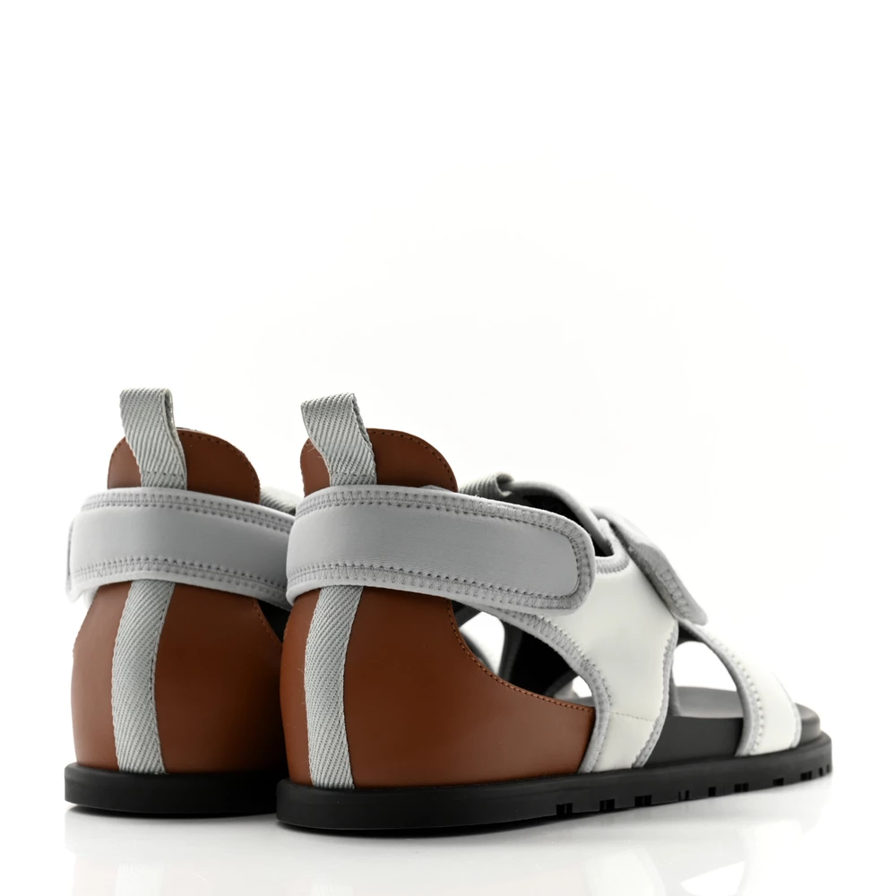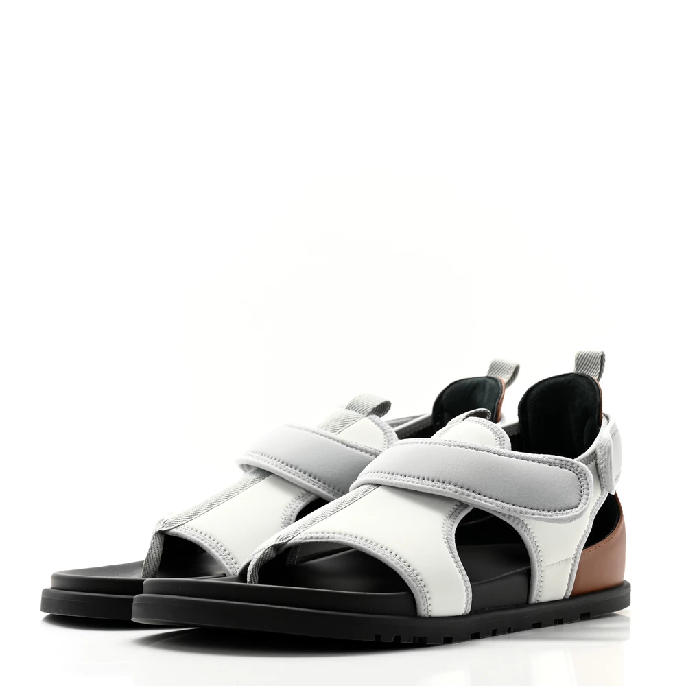This Hermès Giorno sandal in Ivoire Pierre neoprene is a sleek and contemporary design. The soft ivory and stone-gray neoprene create a modern contrast, while the sporty aesthetic ensures versatility. Designed for both comfort and style, this sandal is a refined take on casual luxury.