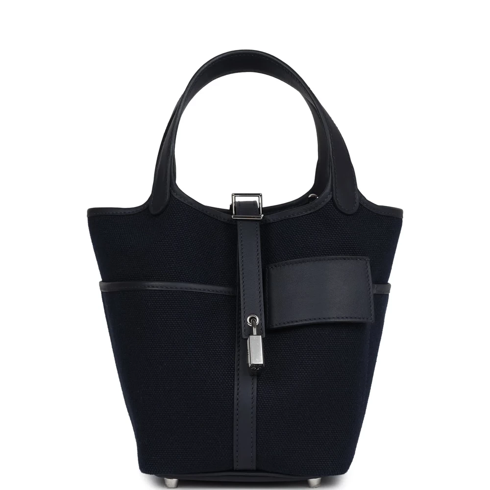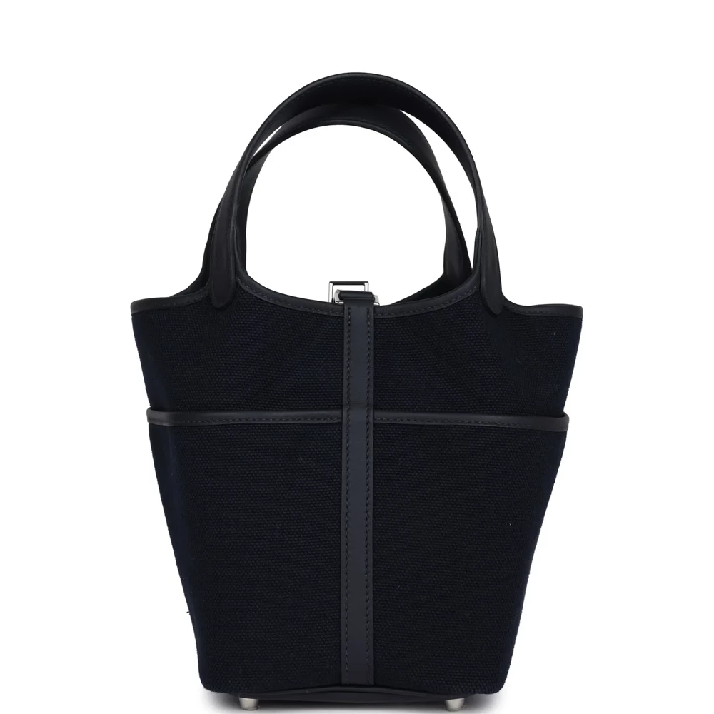This Hermès Picotin Cargo 18 Bleu Caban Swift and Toile Canvas with Palladium Hardware is a functional and stylish handbag in a deep navy hue. The combination of soft Swift leather and durable Toile canvas gives it a modern and practical edge. The cargo pockets add utility, while the palladium hardware keeps it sleek. This Picotin is a refined and versatile everyday bag.