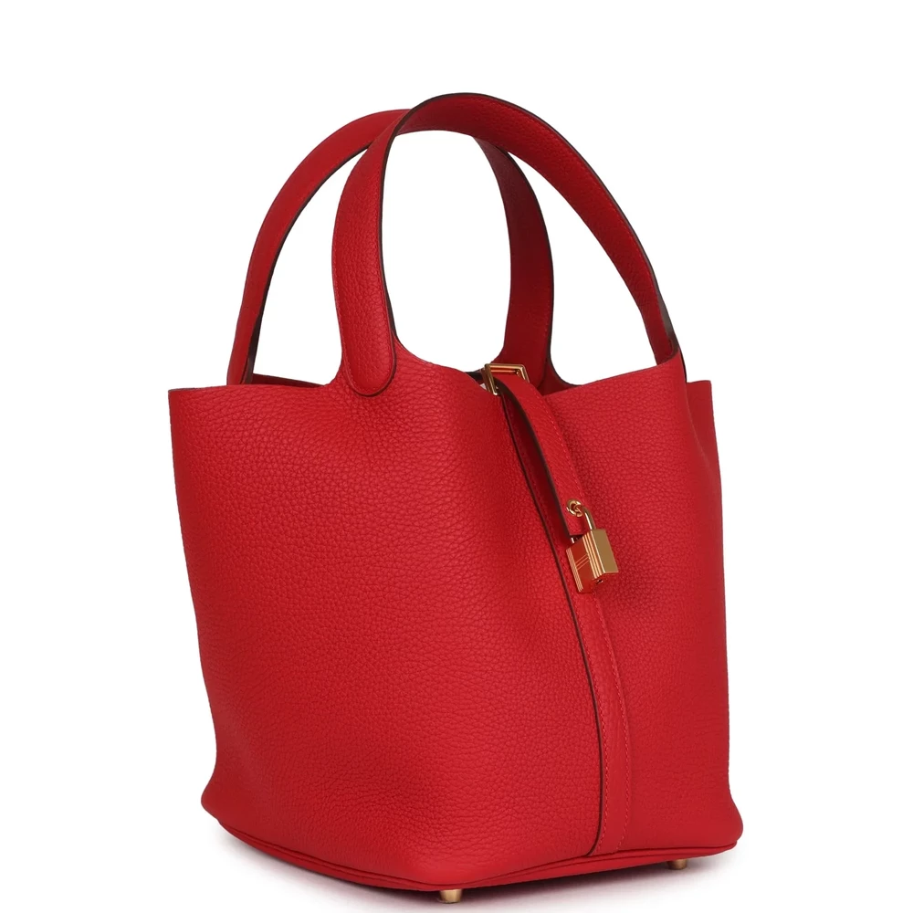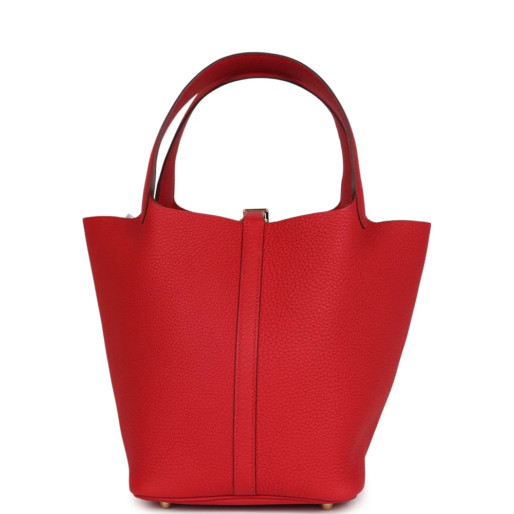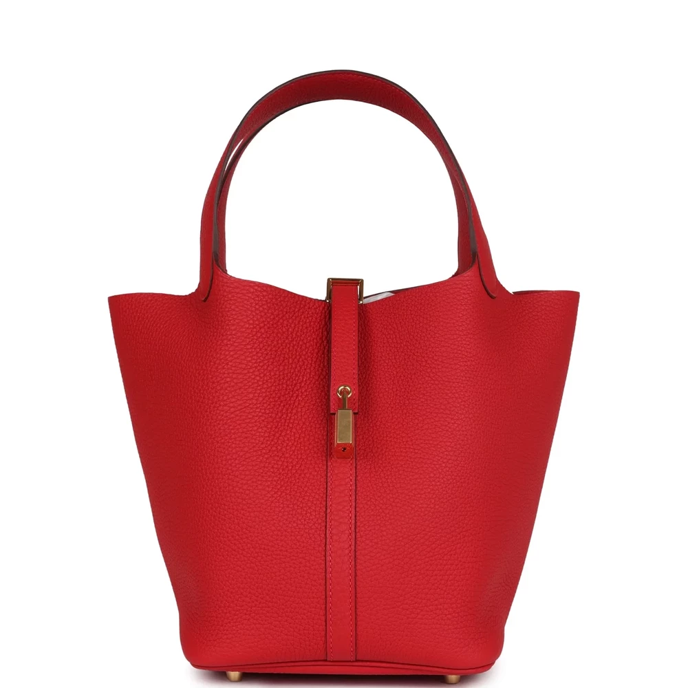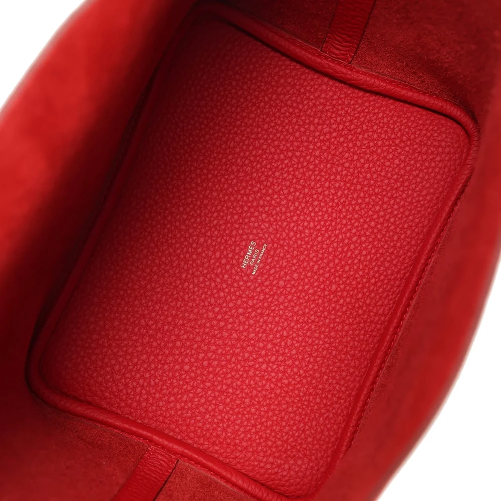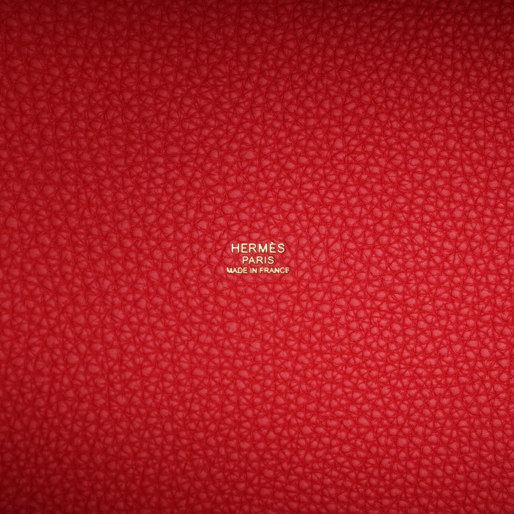 This Hermès Picotin Lock 22 Vermillion Maurice with Gold Hardware is a rich and fiery handbag in a deep red-orange shade. The Maurice leather gives it a structured yet supple feel, while the gold hardware enhances its warm undertones. The 22 cm size provides ample space while maintaining a sleek profile. This Picotin is a bold and elegant addition to any collection.