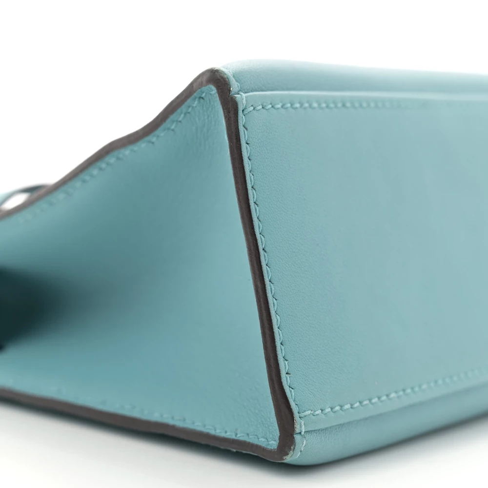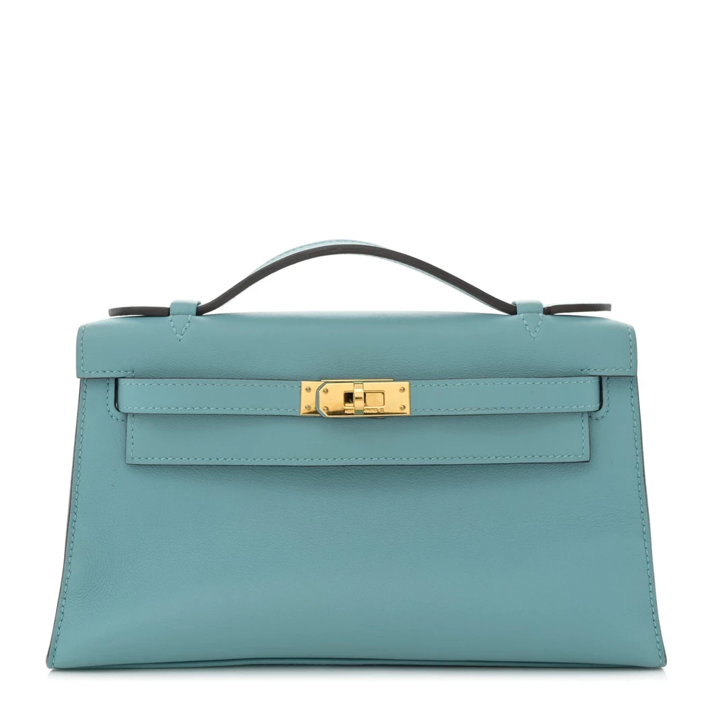 This Hermès Swift Kelly Pochette Clutch Bleu Saint Cyr is a sleek and elegant clutch in a serene blue shade. The Swift leather provides a smooth, velvety texture, enhancing its refined appeal. The compact Pochette design makes it a perfect evening accessory. Gold hardware adds a luxurious contrast, elevating its timeless charm. This clutch is a must-have for those who appreciate understated yet striking elegance.