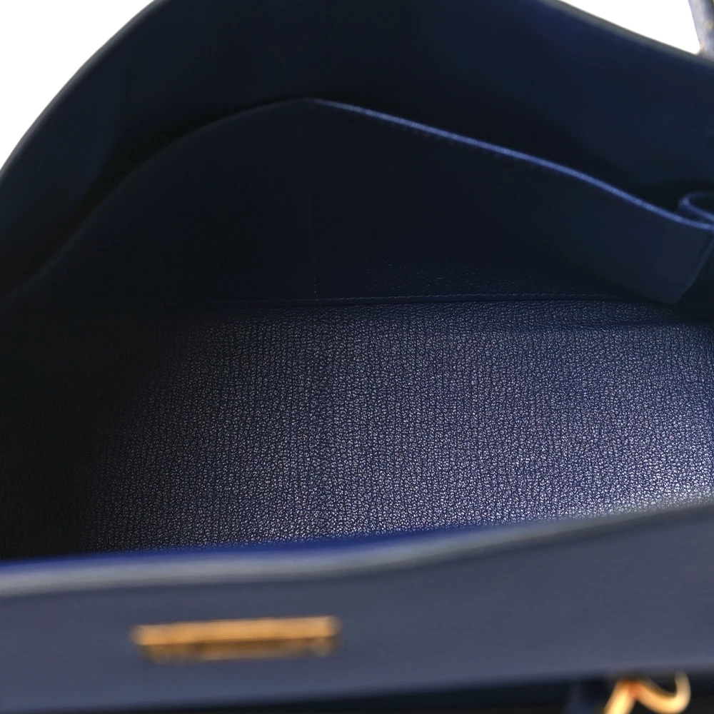 This Hermès Togo Kelly Retourne 28 Bleu Encre is a deep and sophisticated handbag in a rich navy blue shade. The Togo leather provides a supple, grained texture, ensuring both durability and elegance. The Retourne construction gives it a relaxed yet refined silhouette. Palladium hardware adds a cool, modern contrast. This Kelly is a versatile and timeless choice for those who love deep, rich hues.