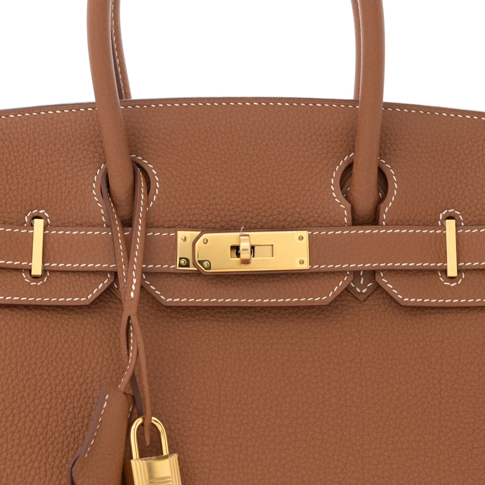This Hermès Togo Birkin 30 in Gold is a quintessential Hermès handbag in one of its most iconic shades. The warm caramel-toned Gold leather is enhanced by white contrast stitching, adding a signature detail. Togo leather offers a fine grain and a supple yet structured feel. Measuring 30 cm, it is the perfect blend of elegance and everyday practicality. Palladium hardware adds a modern and refined touch to this classic beauty.