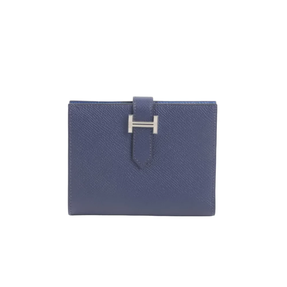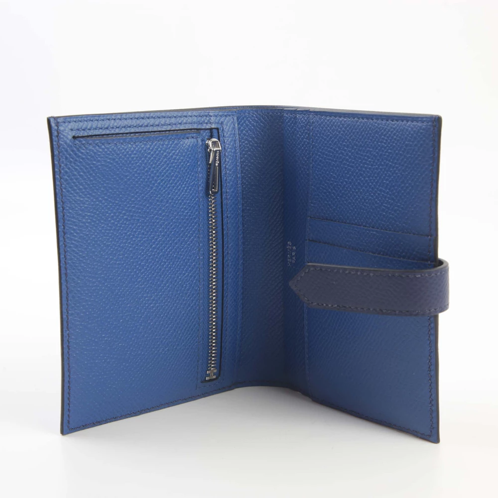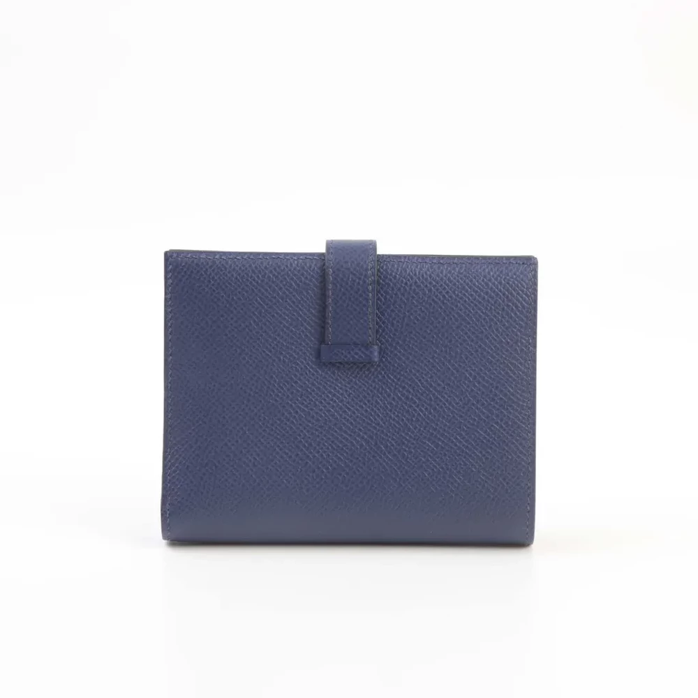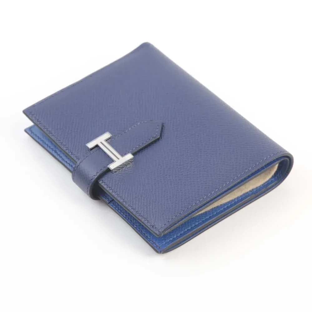 This Hermès Bearn Compact Wallet in Bleu Encre (M3) and Bleu Zellige (I7) is a refined and practical accessory crafted from durable Epsom leather. The palladium hardware enhances its sophisticated dual-tone design, making it a timeless addition to any collection. With approximate dimensions of 12cm in width, 9.5cm in height, and 3cm in depth, it offers a compact yet functional storage solution. Stamped with a U (2022), this wallet reflects Hermès’ exceptional craftsmanship. It comes with its original box and is currently located in Japan.