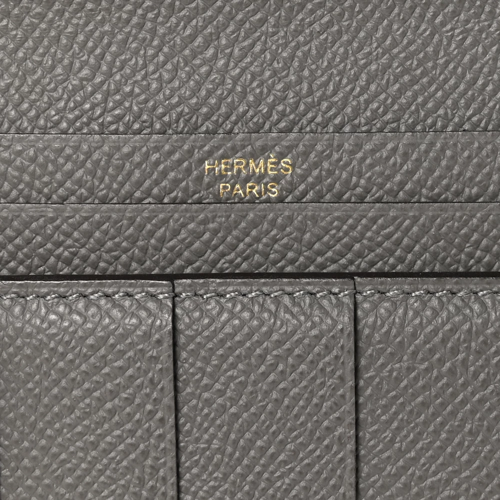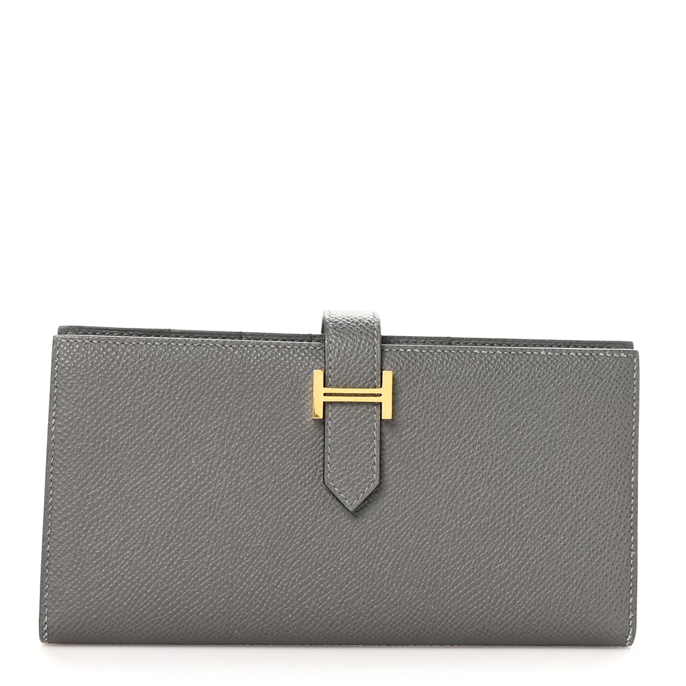 This Hermès Epsom Bearn Gusset Wallet in Gris Meyer is a sleek and elegant accessory. The cool grey hue enhances the structured Epsom leather, offering both durability and sophistication. Featuring the signature H clasp, it provides secure storage while maintaining a classic silhouette. A refined and timeless wallet for everyday luxury.
