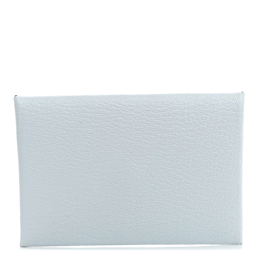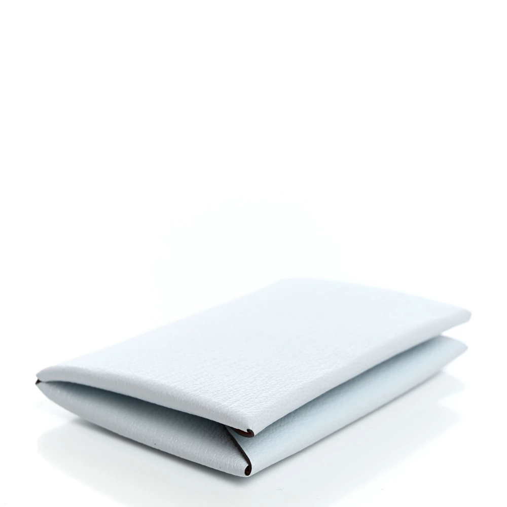 This Hermès Chèvre Mysore Verso Calvi Card Case in Bleu Brume and Brique is a beautifully contrasted piece. The soft Bleu Brume exterior pairs elegantly with the warm Brique interior, creating a unique color combination. Crafted from fine-grain Chèvre Mysore leather, it offers a smooth and durable texture. A stylish and practical way to carry essential cards.