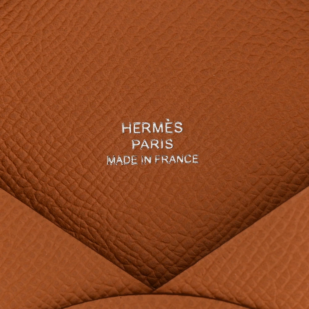 This Hermès Epsom Calvi Card Case in Gold is a classic and practical accessory. The warm Gold hue pairs beautifully with the structured Epsom leather for a timeless look. Featuring a simple yet elegant fold-over design, it keeps cards secure and organized. Its compact size makes it easy to carry in small bags or pockets. A must-have for those who appreciate minimalist luxury.