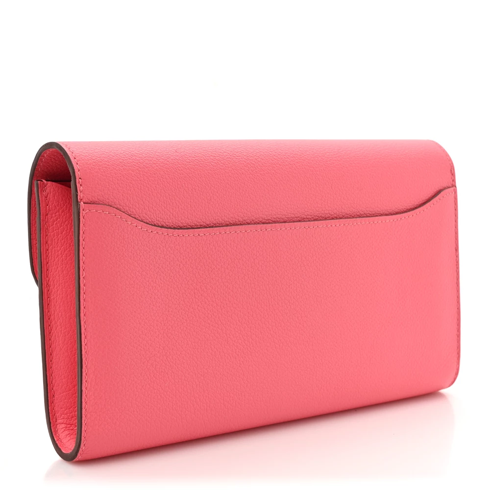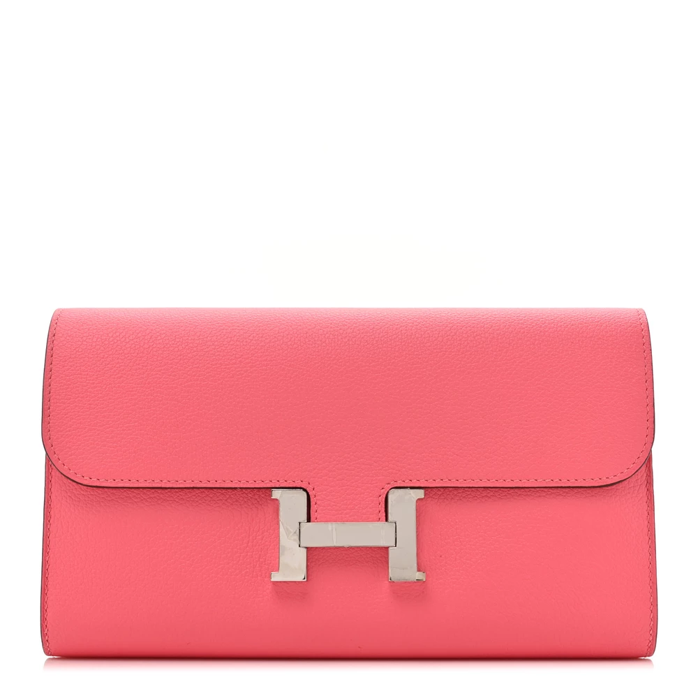 This Hermès Evercolor Constance Long Wallet in Rose Azalée is a stunning blend of elegance and functionality. The soft pink hue enhances the smooth Evercolor leather, creating a refined and luxurious aesthetic. Featuring the iconic Constance H clasp, it adds a signature touch while securing essentials. A timeless wallet that embodies sophistication.