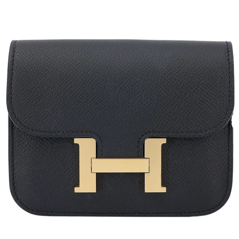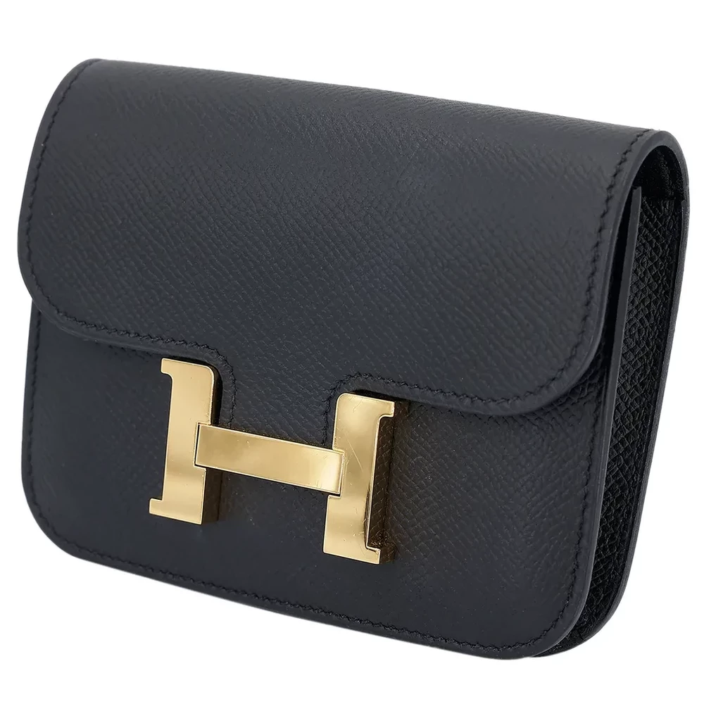 This Hermès Constance Wallet in Black (89) is a timeless and sophisticated accessory, crafted from durable Epsom leather. The deep black hue is elegantly paired with gold hardware, enhancing its luxurious appeal. Measuring approximately 13cm in width, 10cm in height, and 2cm in depth, this wallet offers a sleek yet practical design. Stamped with a Z (2021), it showcases Hermès’ exceptional craftsmanship. It comes with a dustbag and is currently located in Hong Kong.