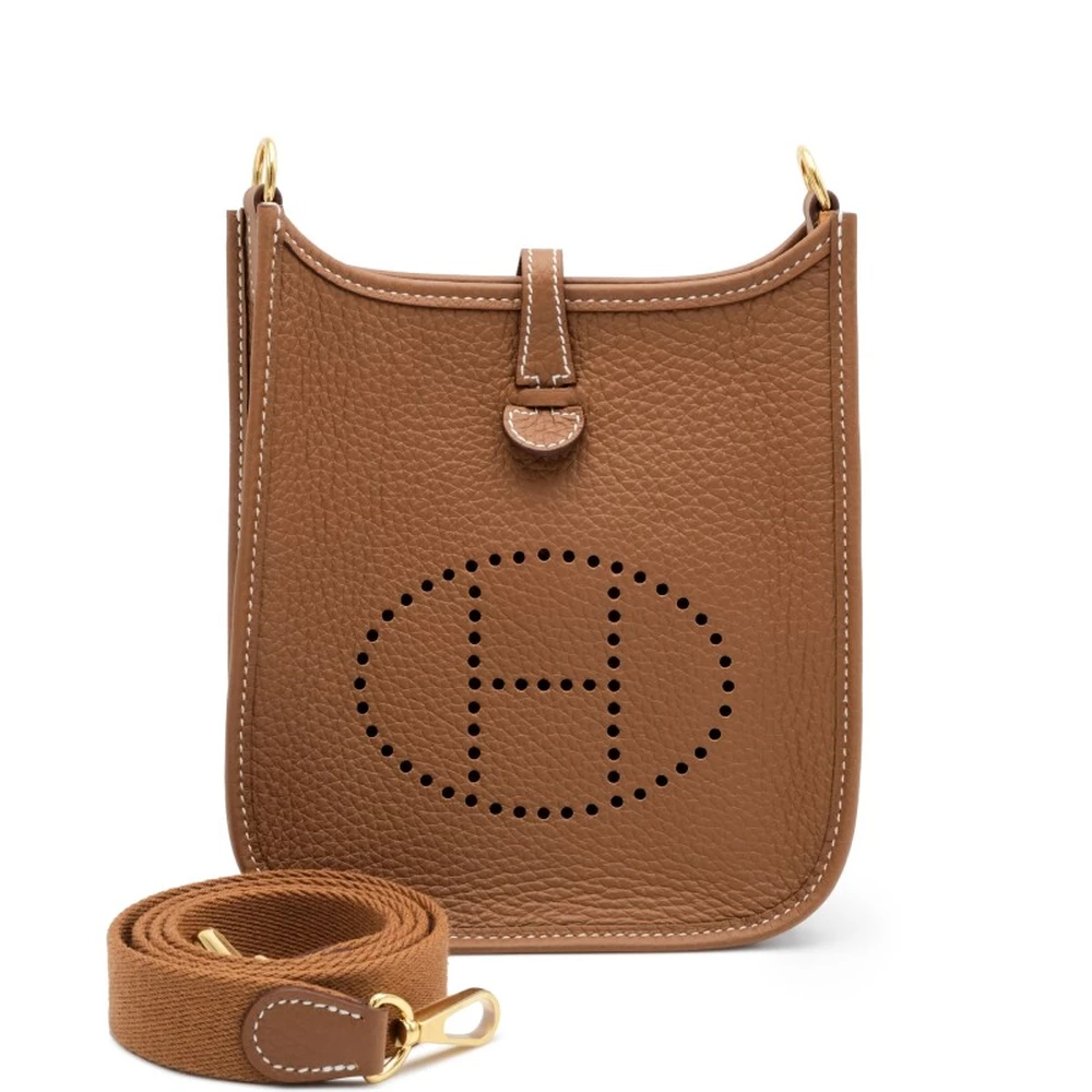 This Hermès Gold Clémence Mini Evelyne II TPM 16 with Gold Hardware is a luxurious and versatile handbag in a rich caramel hue. The soft Clémence leather provides a supple yet structured look, while the gold hardware enhances its classic elegance. The perforated “H” logo and lightweight design make it an effortless luxury staple.