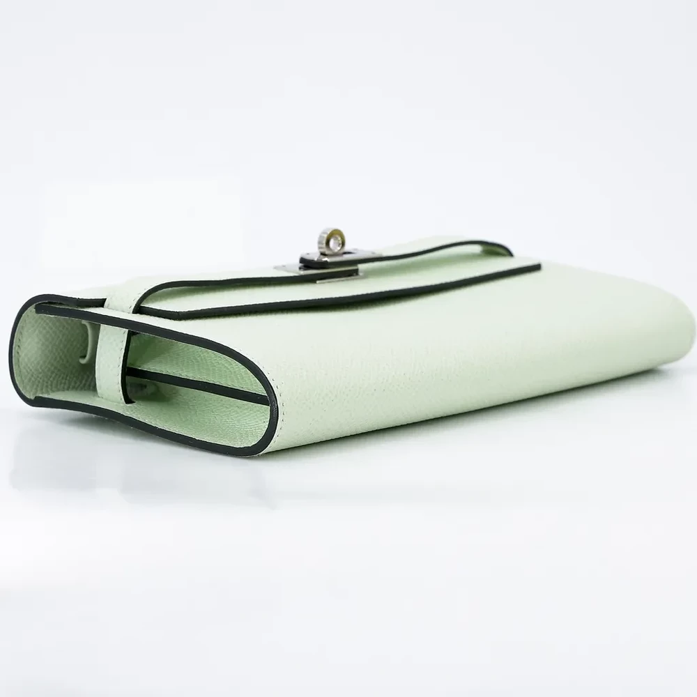 The Kelly To Go Wallet in Vert Fizz Epsom is a masterclass in functional high-jewelry. This piece transcends the traditional wallet, offering a structured silhouette that commands attention through its “Stealth Wealth” aesthetic. The Epsom leather provides a cross-grained texture that is both scratch-resistant and remarkably firm to the touch, ensuring the wallet maintains its crisp, architectural lines over years of use.