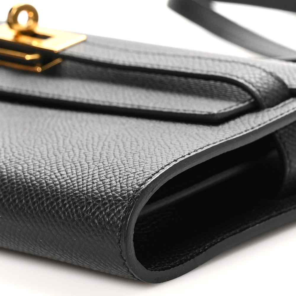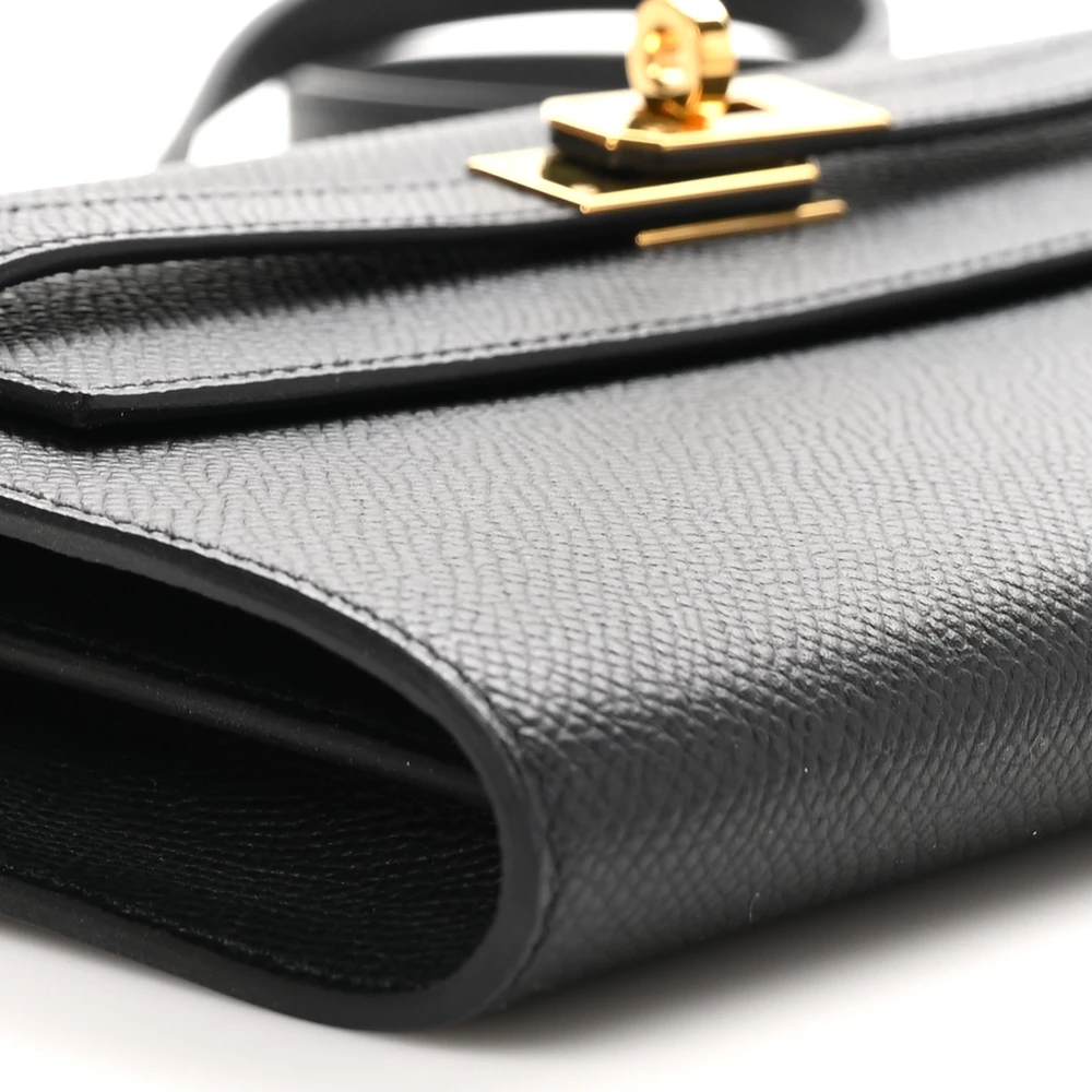 This Hermès Epsom Kelly Wallet To Go in Black is a refined and versatile essential. The deep black hue enhances the structured Epsom leather, ensuring durability and a polished finish. Featuring the iconic Kelly lock closure, it provides a signature Hermès touch while keeping essentials secure. Designed with a detachable strap, it transitions seamlessly from a wallet to a crossbody. A true classic for any collection.