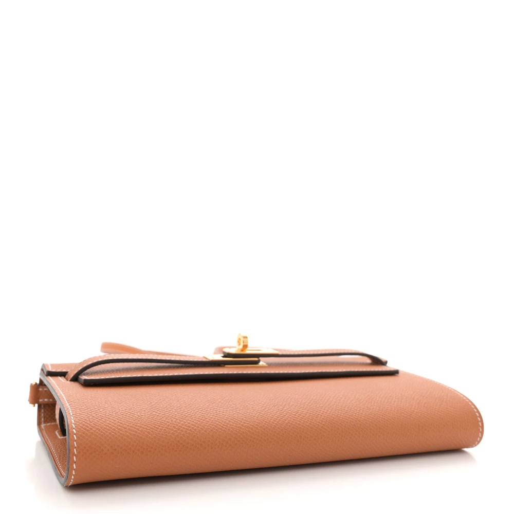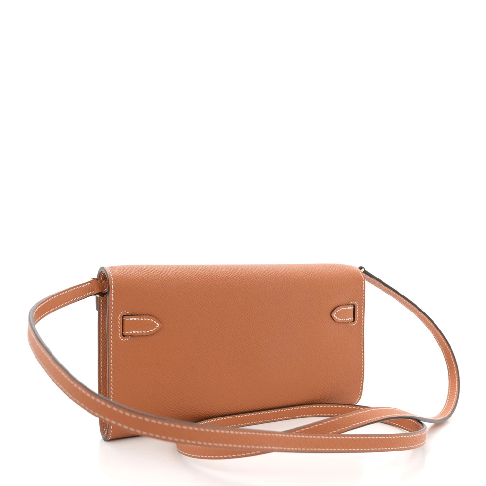 This Hermès Epsom Kelly Wallet To Go in Gold is a timeless and elegant piece. The warm Gold shade enhances the structured appeal of Epsom leather, offering both durability and refinement. Featuring the classic Kelly lock closure, it exudes sophistication. Designed with a detachable strap, it can be worn as a crossbody or carried as a wallet. A versatile and luxurious investment.