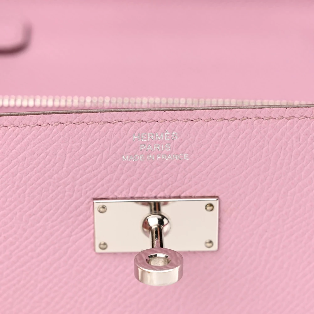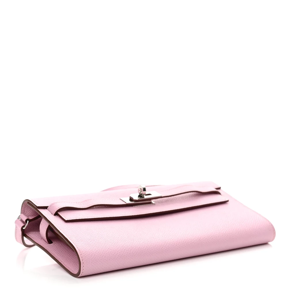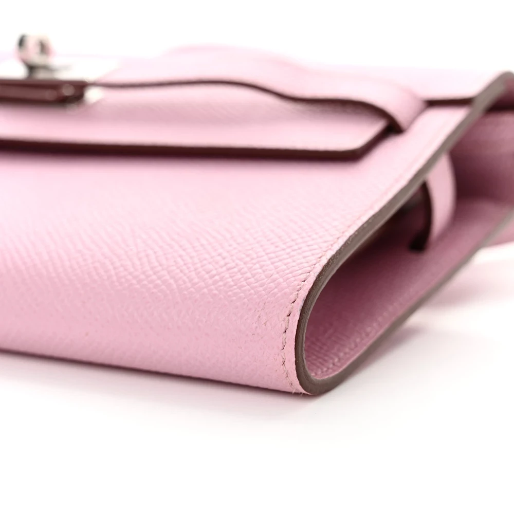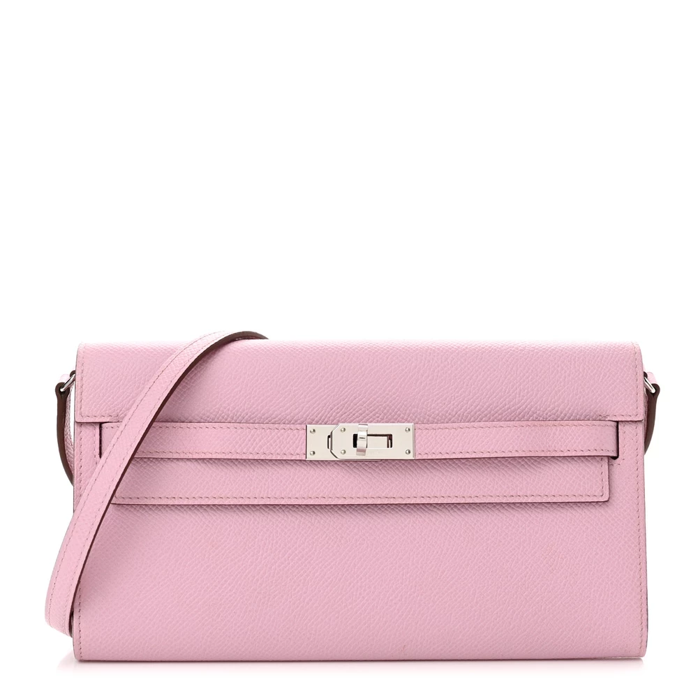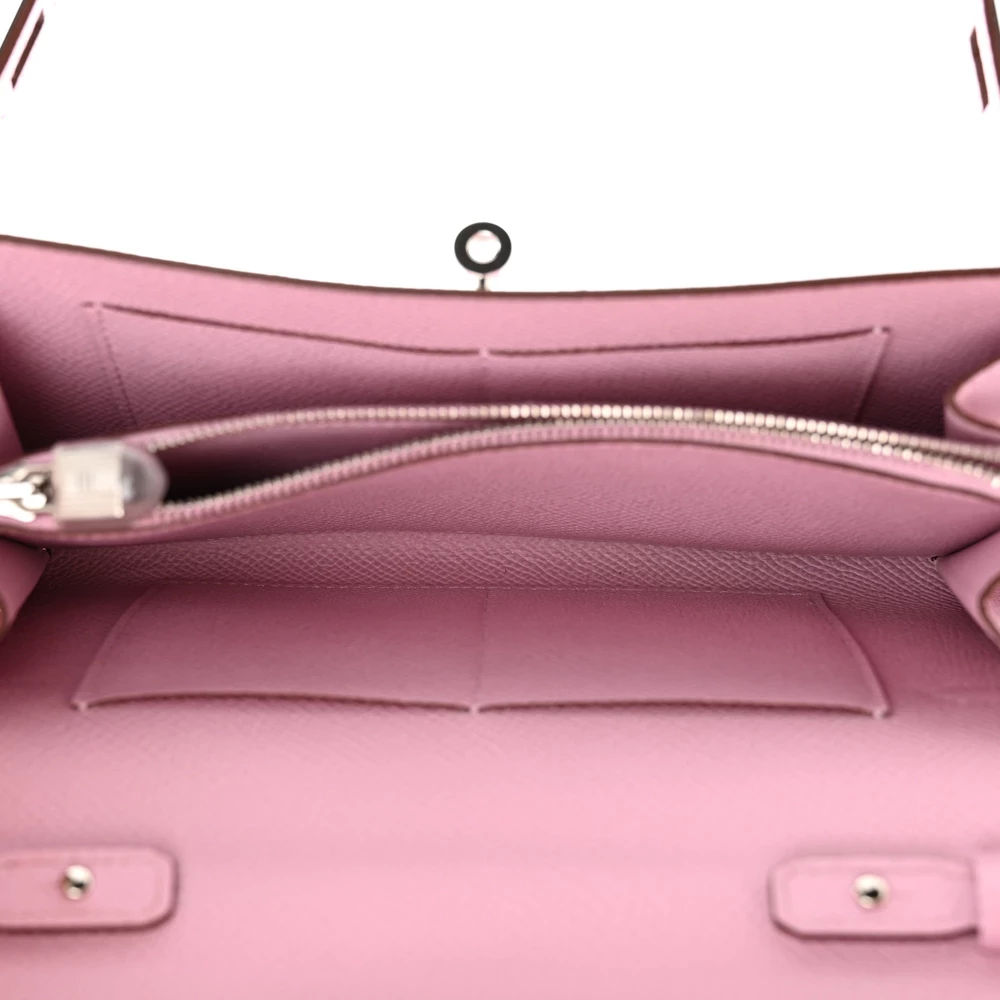 This Hermès Epsom Kelly To Go Wallet Mauve Sylvestre is a charming and feminine accessory in a soft purple-pink shade. The structured Epsom leather ensures durability while maintaining a sleek silhouette. The compact design makes it perfect for carrying essentials in style. Palladium hardware adds a subtle contrast, enhancing its delicate yet modern appeal. This Kelly Wallet is a refined addition for those who appreciate pastel elegance.