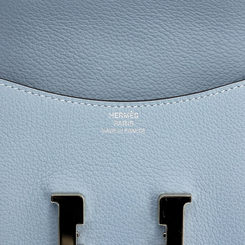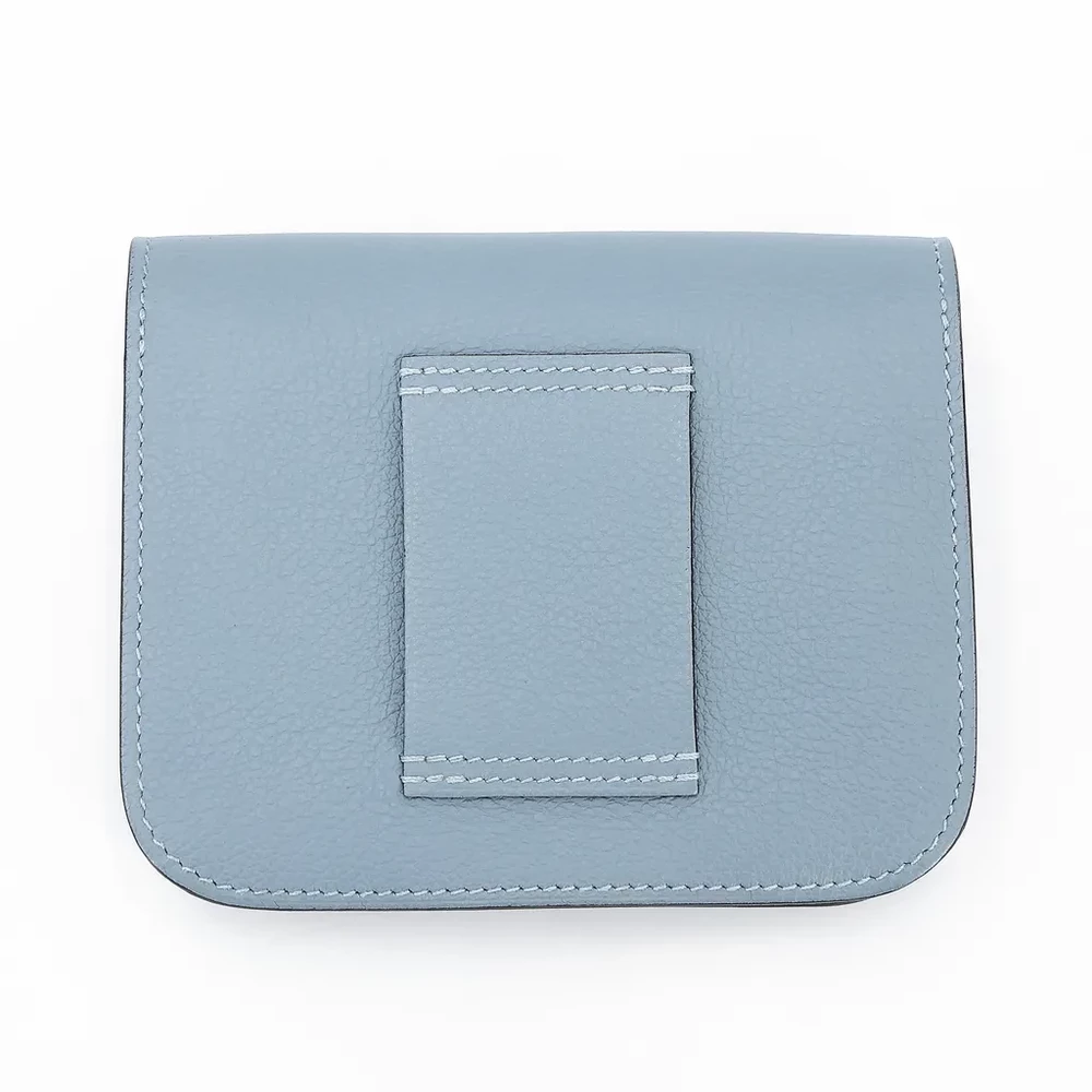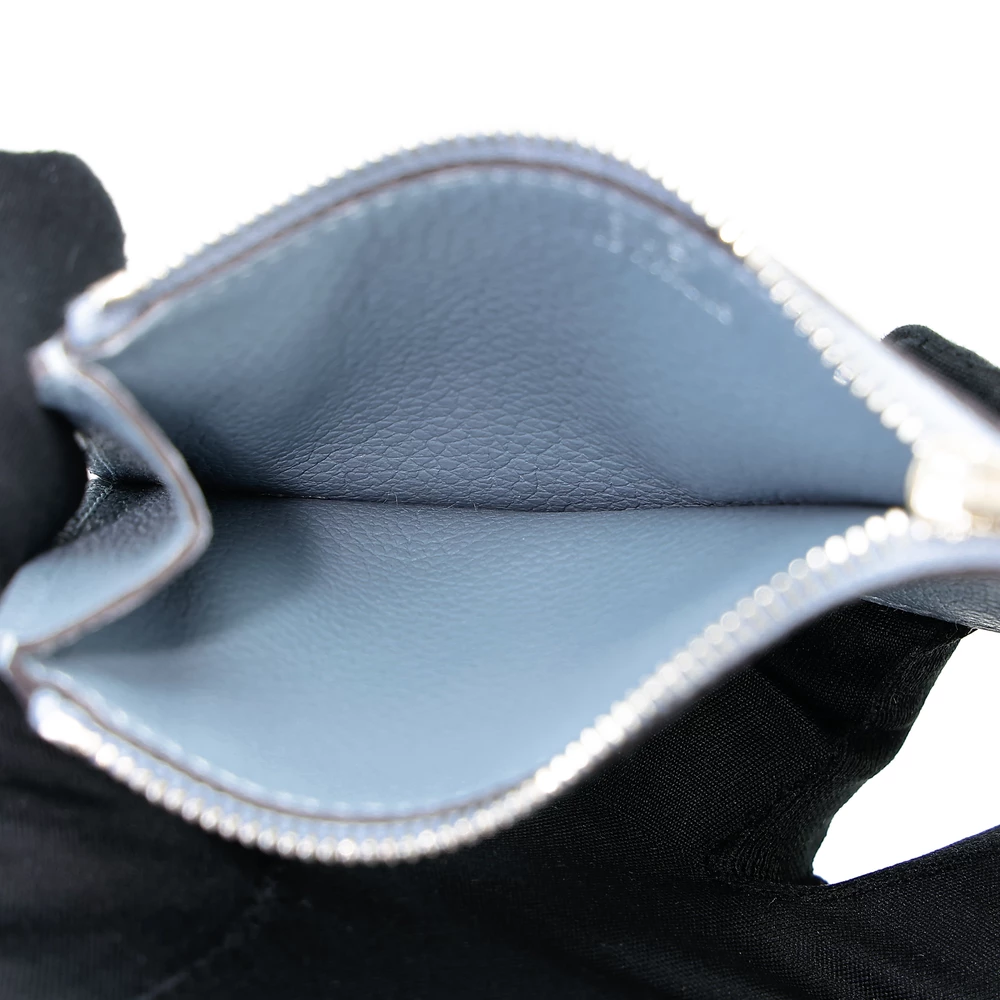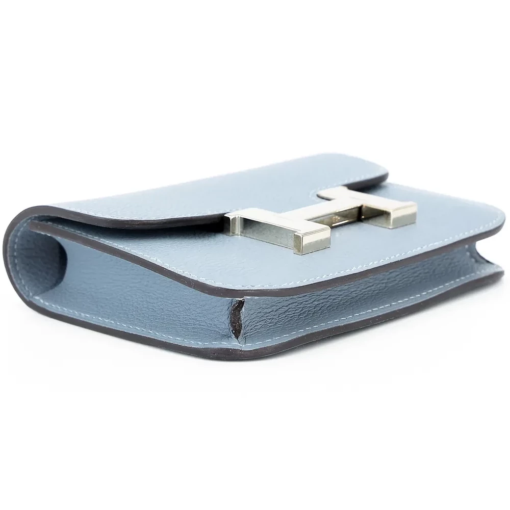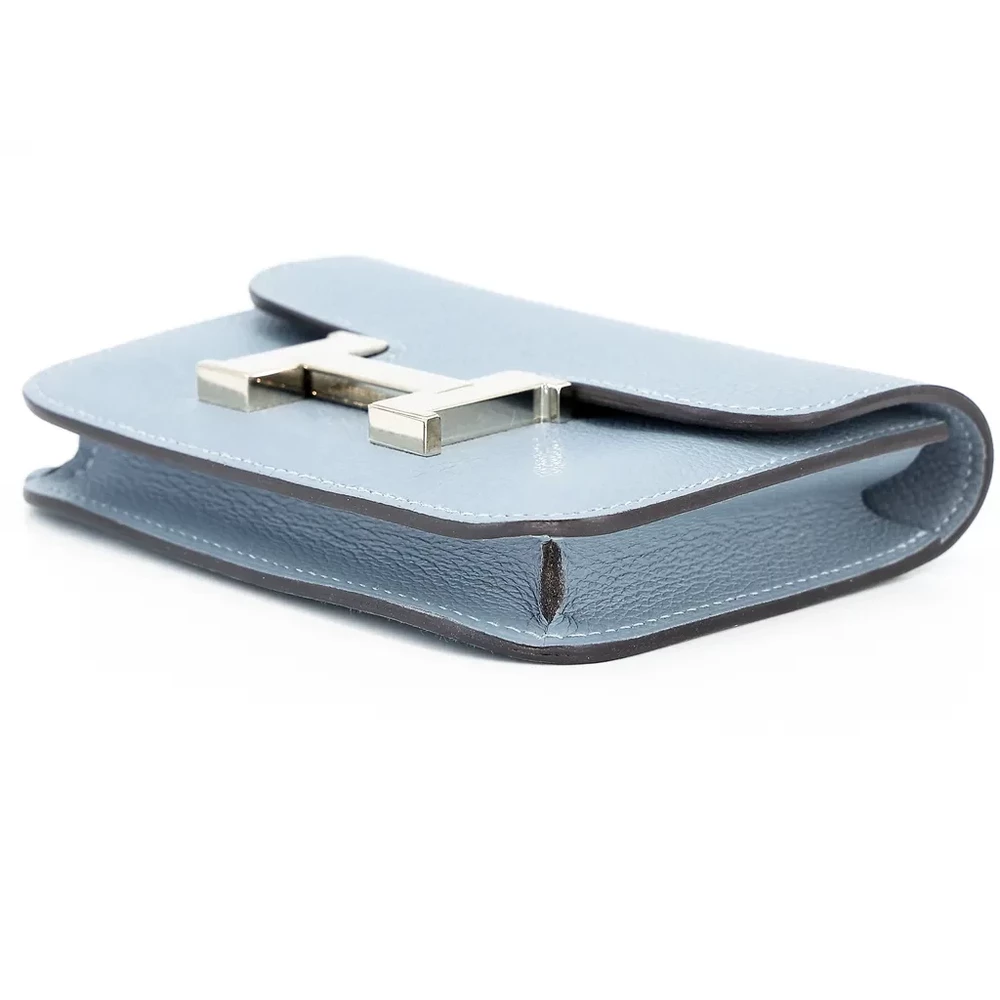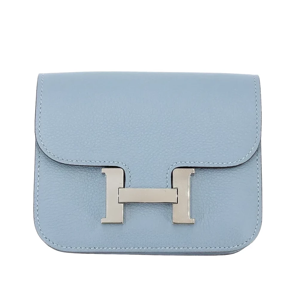 This Hermès Constance Slim Wallet is a refined accessory crafted from Evercolor leather in the soft and elegant Bleu Lin (J7) shade. Complemented by sleek Palladium hardware, this wallet embodies timeless sophistication and luxury. Measuring approximately 13cm in width, 10cm in height, and 2cm in depth, it offers a compact yet functional design for everyday essentials. It comes with a box and dustbag, ensuring its authenticity and protection. Located in Hong Kong, this exquisite piece showcases Hermès’ impeccable craftsmanship and attention to detail.