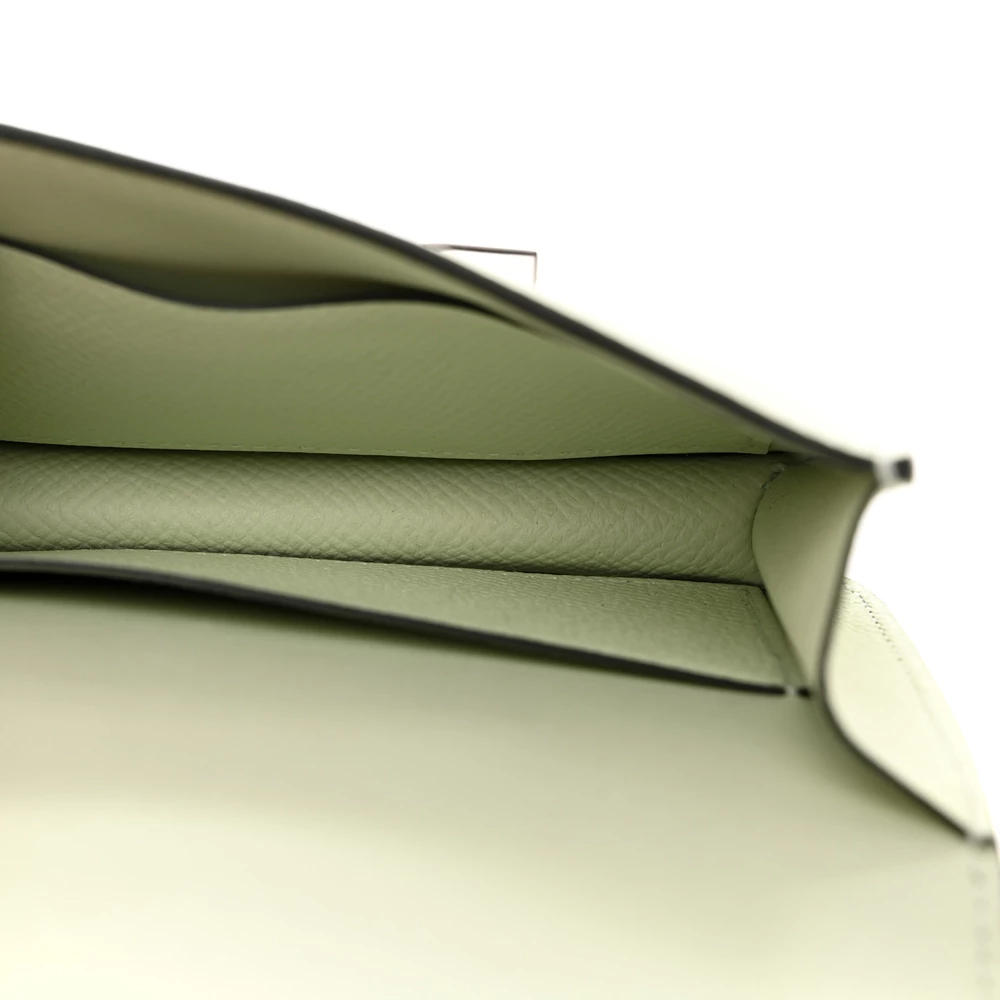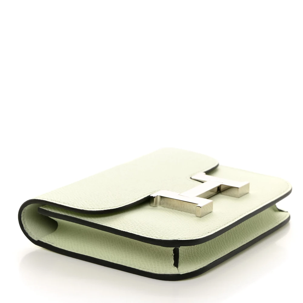 This Hermès Epsom Constance Slim Wallet in Vert Fizz is a fresh and modern statement piece. The soft green Vert Fizz shade enhances the structured Epsom leather, ensuring durability and a refined look. Featuring the iconic Constance H clasp, it adds a touch of luxury while keeping essentials secure. A perfect choice for those who love subtle yet sophisticated colors.