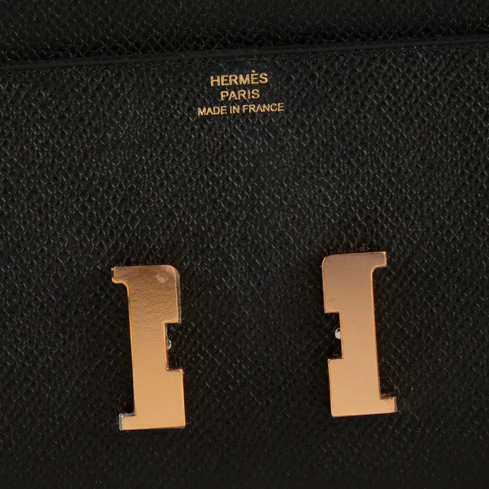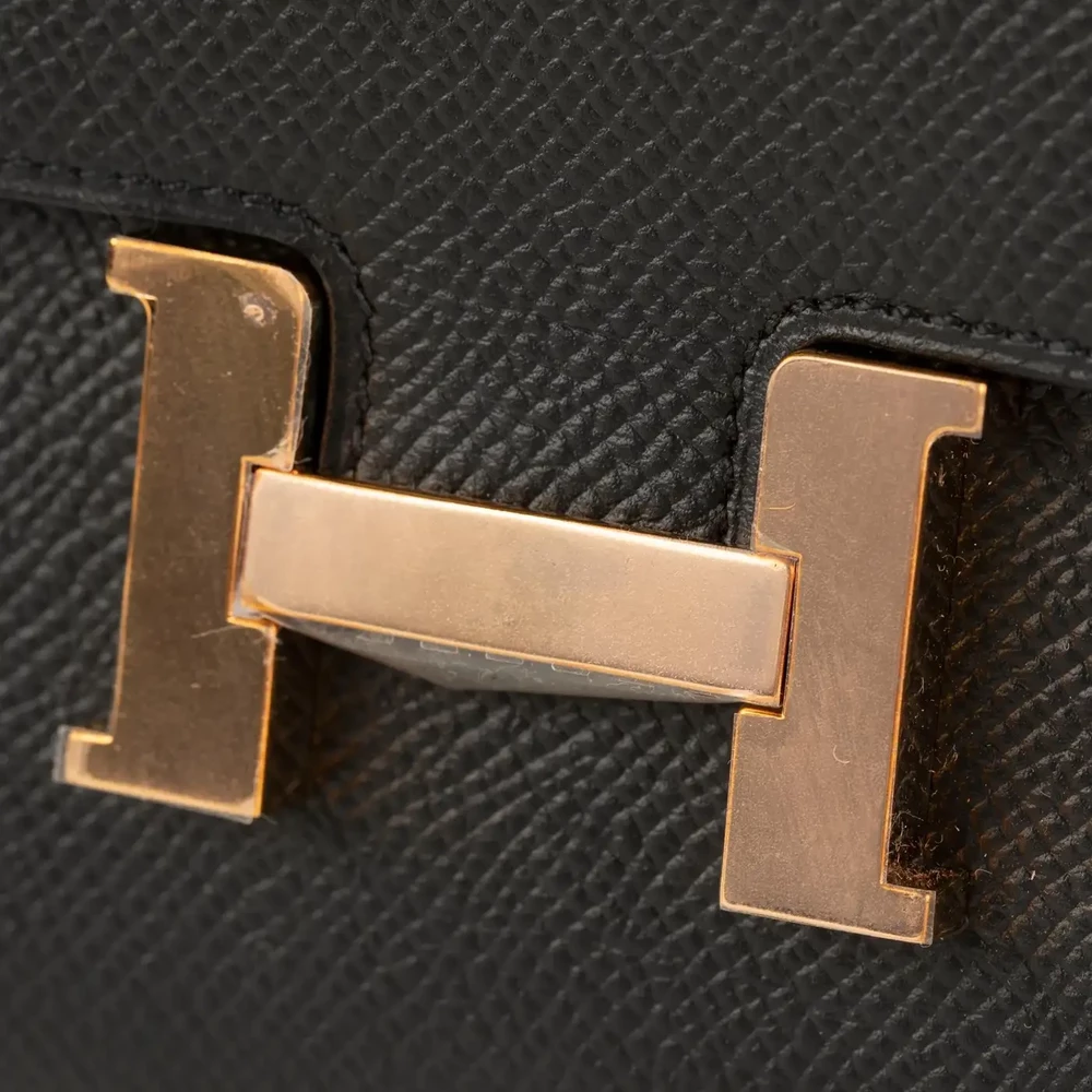 This Hermès Constance Wallet in Black Epsom Leather with Rose Gold Hardware is a sleek and refined accessory. The classic black Epsom leather offers durability and sophistication, while the rose gold H clasp adds a modern and luxurious contrast. Spacious and elegant, it is perfect for both day and evening wear.