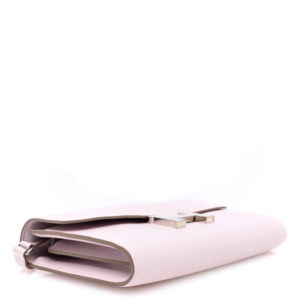 This Hermès Evercolor Constance Wallet To Go in Mauve Pale is a delicate yet striking piece. The soft pastel pink shade pairs beautifully with the fine-grain Evercolor leather, ensuring a smooth and luxurious finish. Featuring the signature Constance H clasp, it blends timeless elegance with practicality. A sophisticated statement wallet that doubles as a stylish crossbody.