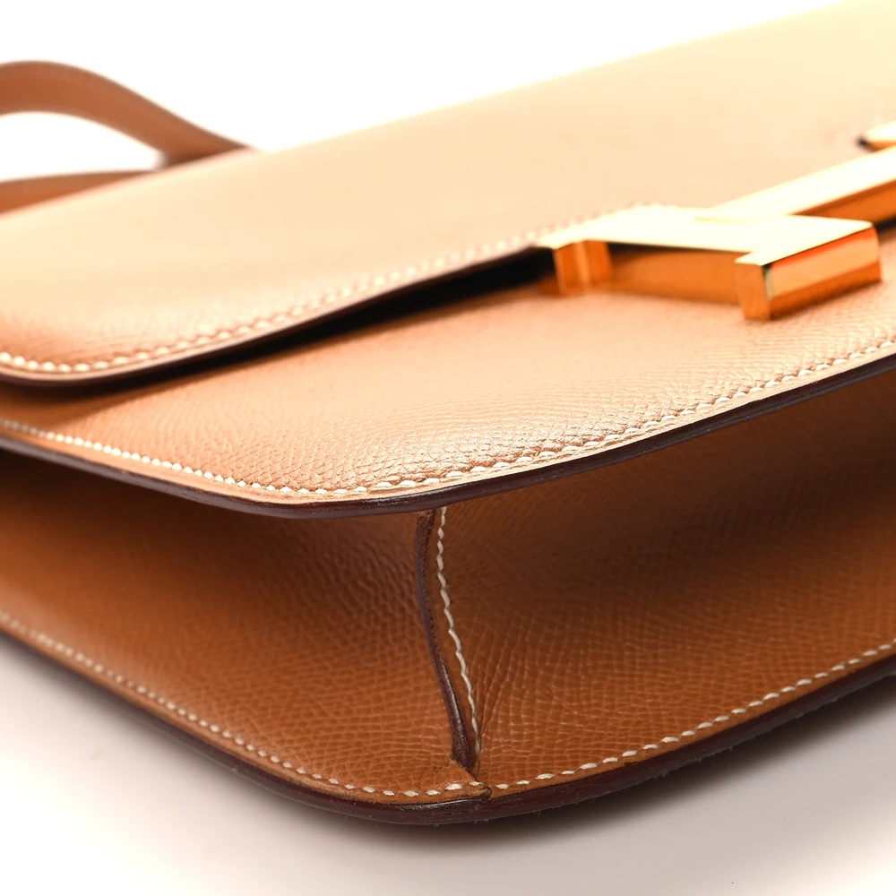 This Hermès Epsom Constance 24 Gold is a classic and timeless handbag in a warm caramel shade. The Epsom leather ensures a structured and scratch-resistant finish, preserving its refined silhouette. The 24cm size offers ample space while maintaining an elegant profile. Gold hardware enhances its luxurious and iconic appeal. This Constance is a staple for any Hermès enthusiast.